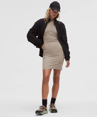 Designed for Casual Buttery-Soft, Ribbed Nulu™ Fabric - Buttery-soft, ribbed texture - Sweat-wicking - Four-way stretch - Quick-drying - Added Lycra® fibre for stretch and shape retention Slim Fit, Above the Knee Length - Skims your body - Falls to just above the centre of the kneecap Product Features - Wear the front buttons open or closed Material and care Materials Body: 78% Nylon22% Lycra Elastane Care Machine Wash Cold - Do Not Bleach - Tumble Dry Low - Do Not Iron - Do Not Dry Clean - Wash With Like Colors