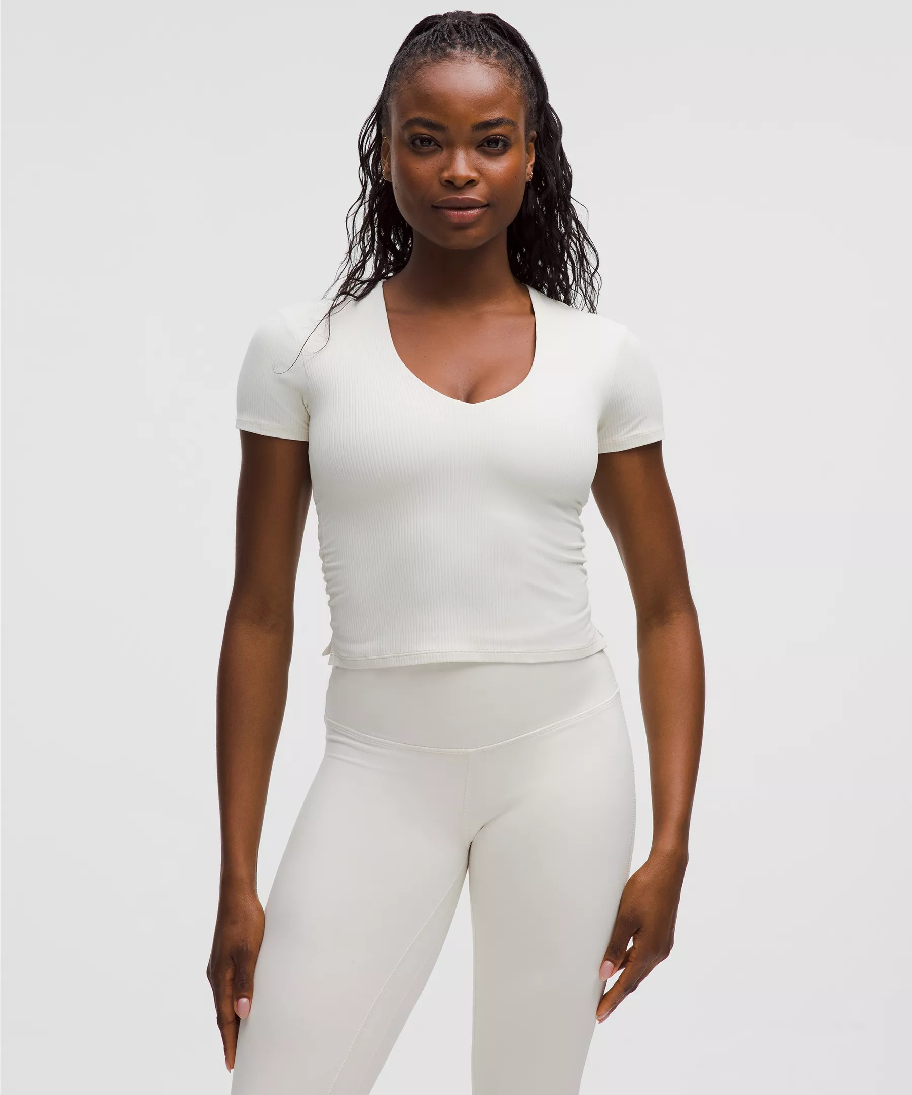 Designed for Yoga Buttery-Soft, Ribbed Nulu™ Fabric - Buttery-soft, ribbed texture - Sweat-wicking - Quick-drying - Four-way stretch - Added Lycra® fibre for stretch and shape retention - Shelf bralette is made from a lightweight version of our luxuriously soft SmoothCover™ fabric Light Support, B–D Cups - Intended to provide light support for B–D cups - Slim fit skims your body - Waist length is not too short, not too long, just right around the waistband - Intended for low-impact activities Product Features - Built-in shelf bralette for added support and coverage - Pockets for optional, removable cups - Side slits at the hems Material and care Materials Mesh: 89% Recycled Nylon11% Elastane - Body: 78% Nylon22% Lycra Elastane - Bra Lining: 83% Recycled Polyester17% Elastane Care Machine Wash Cold - Do Not Bleach - Tumble Dry Low - Do Not Iron - Do Not Dry Clean - Wash With Like Colors