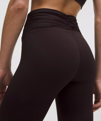 Designed for Yoga Feels Buttery-Soft and Weightless, Nulu™ Fabric - So buttery soft, it feels weightless - Four-way stretch - Sweat-wicking - Breathable - Added Lycra® fibre for stretch and shape retention High Rise, 25" Length - Intended to sit above ankle Product Features - Wide, ruched waistband is smooth next to skin - Back drop-in pocket Material and care Materials Body: 81% Nylon19% Lycra Elastane - Waistband: 90% Nylon10% Lycra Elastane Care Machine Wash Cold - Do Not Bleach - Tumble Dry Low - Do Not Iron - Do Not Dry Clean - Wash With Like Colors