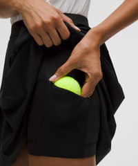 Designed for Tennis Smooth, Four-Way Stretch Fabric - Four-way stretch - Cool, smooth feel High Rise, Mini Length - 4" liner length Product Features - Drop-in liner pockets hold your phone and spare tennis balls - Silicone grippers on the hem prevent ride-up - Built-in liner offers extra coverage Material and care Materials Waistband: 87% Nylon13% Lycra Elastane - Back Lining: 69% Nylon31% Lycra Elastane - Body: 75% Nylon25% Lycra Elastane - Front Lining: 87% Nylon13% Lycra Elastane Care Machine Wash Cold - Do Not Bleach - Tumble Dry Low - Do Not Iron - Do Not Dry Clean - Wash With Like Colors