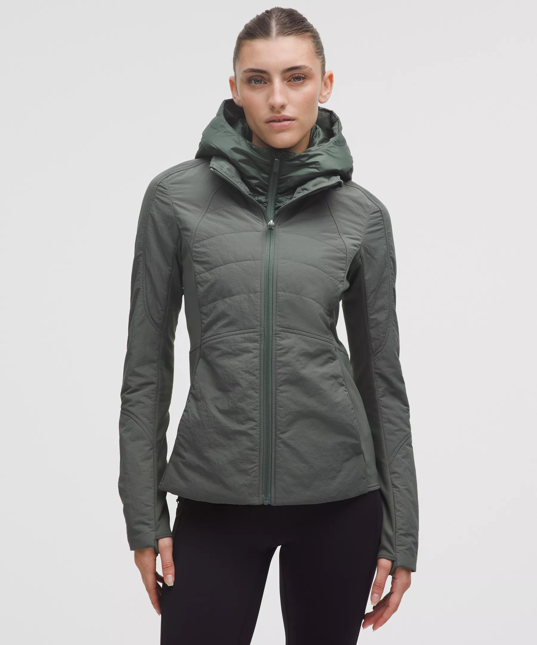 Designed for Running Water-Repellent, Glyde™ Fabric - Water-repellent - Windproof - PrimaLoft® insulation is warm, even when wet - Four-way stretch, breathable tech fleece fabric is DWR-treated to protect you from the elements Slim Fit, Hip Length - Slim fit skims your body Product Features - Removable dickie zips into inside of jacket - Zippered exterior pockets with a hidden phone sleeve - Reflective details - Thumbholes Material and care Materials Side Panels: 82% Nylon18% Lycra Elastane - Hood Facing: 100% Recycled Polyester - Hood: 100% Nylon - Body Filling: 75% Recycled Polyester25% Polyester - Hood Lining: 100% Nylon - Lining: 100% Nylon - Body: 100% Nylon - Hood Filling: 75% Recycled Polyester25% Polyester Care Machine Wash Cold - Do Not Bleach - Tumble Dry Low - Do Not Iron - Do Not Dry Clean - Wash With Like Colors, Do Not Use Fabric Softener