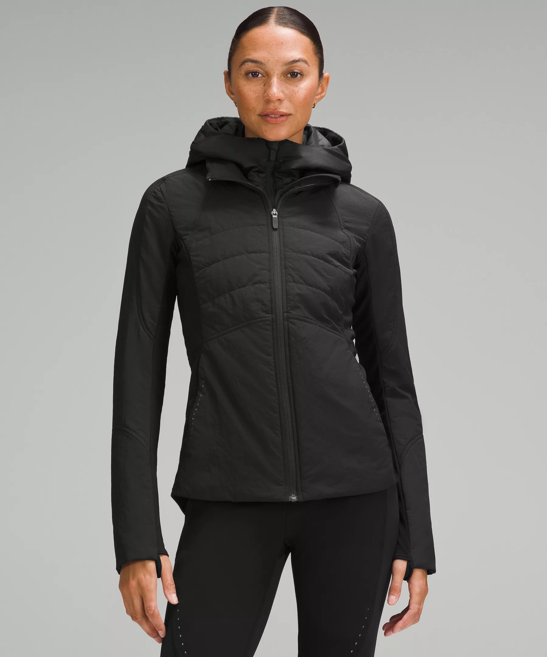 Water-Repellent, Glyde™ Fabric Water-repellent Windproof PrimaLoft® insulation is warm, even when wet Four-way stretch, breathable tech fleece fabric is DWR-treated to protect you from the elements Slim Fit, Hip Length Slim fit skims your body Product Features Removable dickie zips into inside of jacket Zippered exterior pockets with a hidden phone sleeve Reflective details Thumbholes Material and care Materials Body filling: 75% Recycled polyester25% Polyester Side panels: 82% Nylon18% Lycra® elastane Hood facing: 100% Polyester Lining: 100% Nylon Body: 100% Nylon Hood filling: 75% Recycled polyester25% Polyester Hood: 100% Nylon Hood lining: 100% Nylon Care Wash with like colours Machine wash cold Do not bleach Tumble dry low Do not iron Do not dry clean Imported