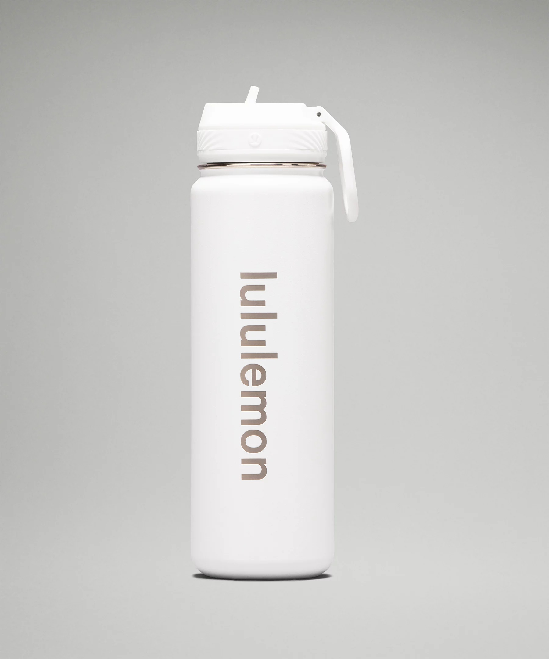 Dimensions and Volume Dimensions: 26.4cm x7.7cm (10.4" x 3.0") Volume: 24oz (710ml) Product Features Folding straw lid for easy sipping Double-wall design keeps bottle sweat-free Powder coated for sure grip, even when hands are sweaty Vacuum insulation keeps drink ice cold No-flavour transfer keeps contents tasting fresh Care Instructions: Wash before use. Lid is dishwasher-safe on top rack only. Please hand wash the body of the bottle to preserve the finish. Do not fill with hot water To deep clean the lid, remove the interior silicone ring and soak in a 2:1 solution of water and vinegar, or cleanse using dish soap. Do not use harsh chemicals like bleach or chlorine To reassemble, press the ring back into the lid’s open cavity with the tab exposed. Ensure the ring is evenly pressed into the cavity before screwing the lid back on for a secure, leak-proof fit Fits into most cup holders for in-transit convenience Material and care Materials Band: 100% Silicone Top: 100% Polypropylene Body: 100% Steel Care Handwash Only