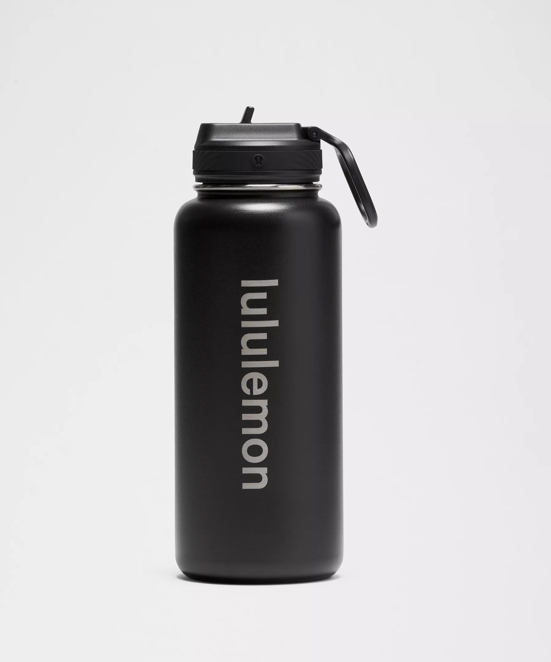 Designed for Casual Dimensions and Volume - Dimensions: 26.4cm x 9.5cm (10.4" x 3.8") - Volume: 32oz (946ml) Product Features - Folding straw lid for easy sipping - Double-wall design keeps bottle sweat-free - Vacuum insulation keeps drink ice cold - No-flavour transfer keeps contents tasting fresh - Powder coated for sure grip, even when hands are sweaty - Care Instructions: Wash before use. Lid is dishwasher-safe on top rack only. Please hand wash the body of the bottle to preserve the finish. Do not fill with hot water - To deep clean the lid, remove the interior silicone ring and soak in a 2:1 solution of water and vinegar, or cleanse using dish soap. Do not use harsh chemicals like bleach or chlorine - To reassemble, press the ring back into the lid’s open cavity with the tab exposed. Ensure the ring is evenly pressed into the cavity before screwing the lid back on for a secure, leak-proof fit Material and care Materials Body: 100% Steel - Top: 100% Polypropylene - Band: 100% Silicone Care Do Not Use with Hot Water - Handwash Only - Lid - Dishwasher Top Rack - Wash Before Use