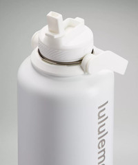 Dimensions and Volume Dimensions: 26.1cm x 12cm (10.3" x 4.7") Volume: 64oz (1.8L) Product Features Folding straw lid for easy sipping Double-wall design keeps bottle sweat-free Powder coated for sure grip, even when hands are sweaty Vacuum insulation keeps drink ice cold No-flavour transfer keeps contents tasting fresh Care Instructions: Wash before use. Lid is dishwasher-safe on top rack only. Please hand wash the body of the bottle to preserve the finish. Do not fill with hot water To deep clean the lid, remove the interior silicone ring and soak in a 2:1 solution of water and vinegar, or cleanse using dish soap. Do not use harsh chemicals like bleach or chlorine To reassemble, press the ring back into the lid’s open cavity with the tab exposed. Ensure the ring is evenly pressed into the cavity before screwing the lid back on for a secure, leak-proof fit Large easy grip handle Material and care Materials Band: 100% Silicone Top: 100% Polypropylene Body: 100% Steel Care Handwash Only