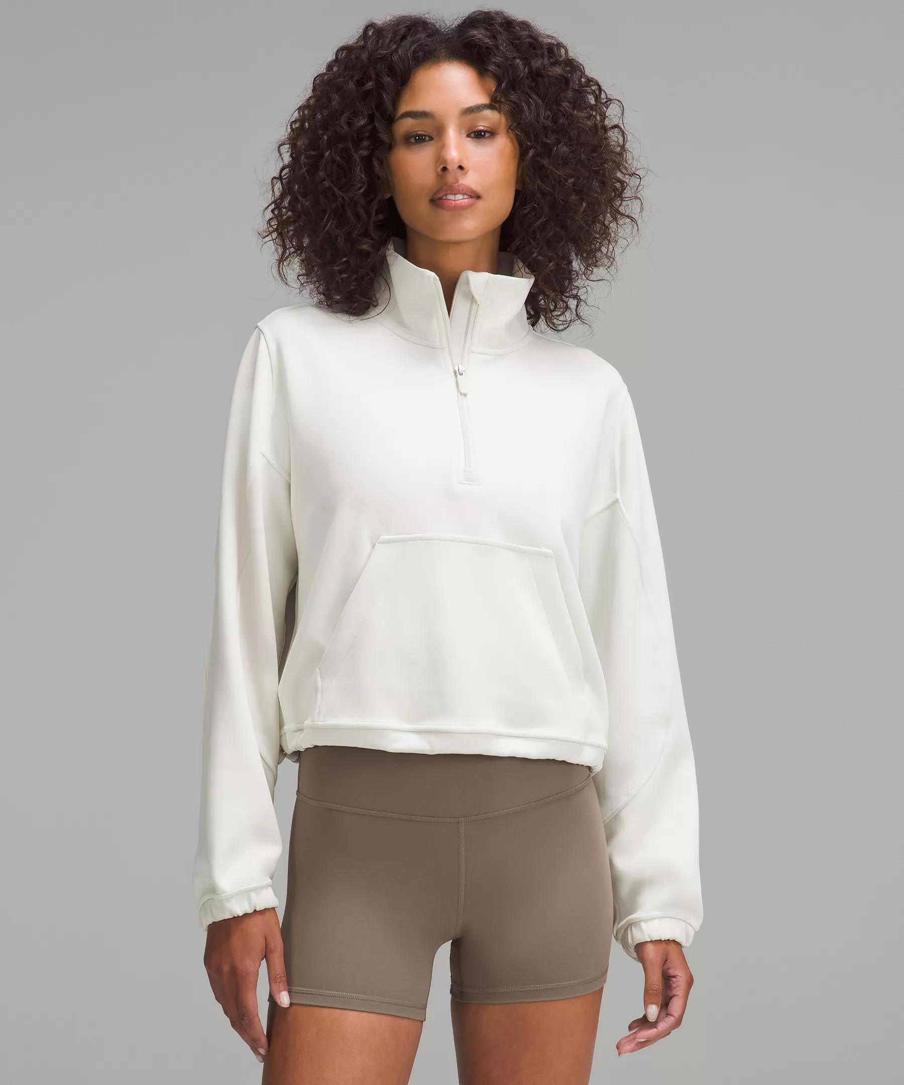 Peach-Fuzz Soft, Brushed Softstreme™ Fabric Peach-fuzz soft texture Brushed for added warmth next to skin Four-way stretch Quick-drying Weighty drape Machine washable. Water drops can easily mark this fabric—a simple wash will remove them 100% of the polyester in this product is recycled (excluding trims) Fabric is derived from responsibly sourced wood-based materials that support the protection of ancient and endangered forests Relaxed Fit, Waist Length A loose fit with a little extra room Not too short, not too long, just right around the waistband Product Features Kangaroo pocket with a hidden card sleeve Hem cinch allows you to choose your fit Material and care Materials Body: 53% Recycled polyester38% Modal9% Elastane Cuff: 53% Recycled polyester38% Lenzing® modal9% Elastane Care Wash separately Machine wash cold gentle Do not bleach Lay flat to dry Do not iron Do not dry clean Imported