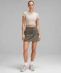 Water-Repellent Fabric Water-repellent Windproof Lightweight Abrasion-resistant Built-in Luxtreme™ fabric liner is sweat-wicking and four-way stretch with a cool, smooth feel This product contains recycled nylon made from repurposed plastic waste Fit Information High rise Skirt length is measured at the centre front, from the top of the waistband to the hem Skirt length by size: 0–2: 15", 4–6: 15.5", 8–10: 16", 12–14: 16.5" Liner length for all sizes: 6” Product Features Cargo pockets Zippered pocket Drawcord to customize fit Locker loop for easy hanging Material and care Materials Back Lining: 69% Nylon31% Lycra Elastane Waistband: 87% Nylon13% Lycra Elastane Body: 65% Recycled Nylon30% Nylon5% Elastane Front Lining: 87% Nylon13% Lycra Elastane Care Wash with like colours Machine wash cold Do not bleach Tumble dry low Do not iron Do not dry clean Imported