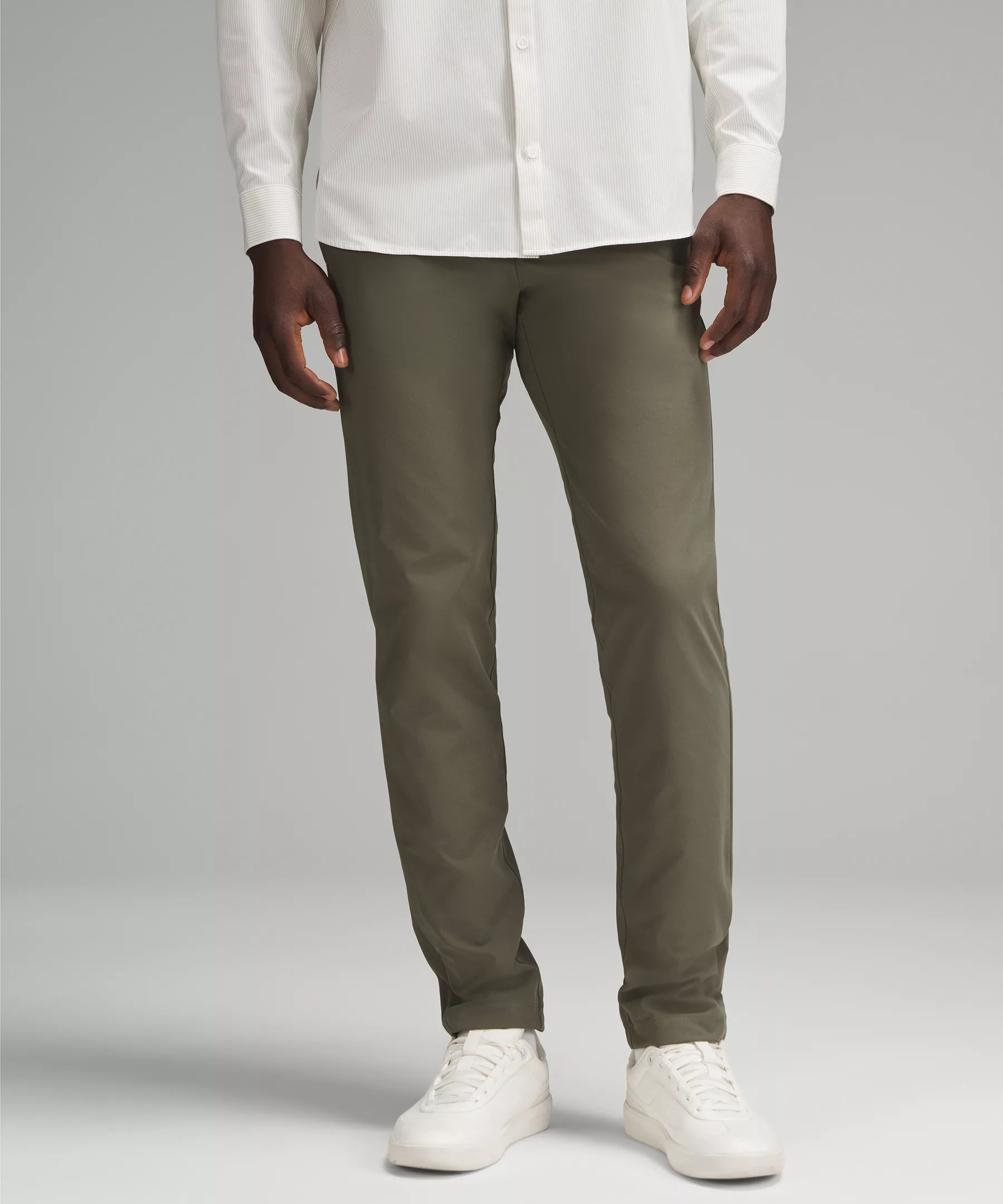 Everyday Performance, Warpstreme™ Fabric Everyday performance Shape retention Quick-drying Four-way stretch Breathable Wrinkle-resistant Feels smooth, falls softly away from body Original Commission Slim Fit, 34" Length Narrow, streamlined fit that skims glutes and thighs Our ABC™ technology uses an ergonomic gusset to remove tension from the crotch of our pants so you can move in comfort Product Features Front hand pockets Hidden zippered pocket Back welt pockets with hidden snaps Flip up the cuffs to reveal reflective details Material and care Materials Pocket lining: 100% Recycled polyester Body: 53% Elastomultiester47% Recycled polyester Waistband lining: 100% Recycled polyester Care Wash with like colours Machine wash cold Do not bleach Tumble dry low Do not iron Do not dry clean Imported