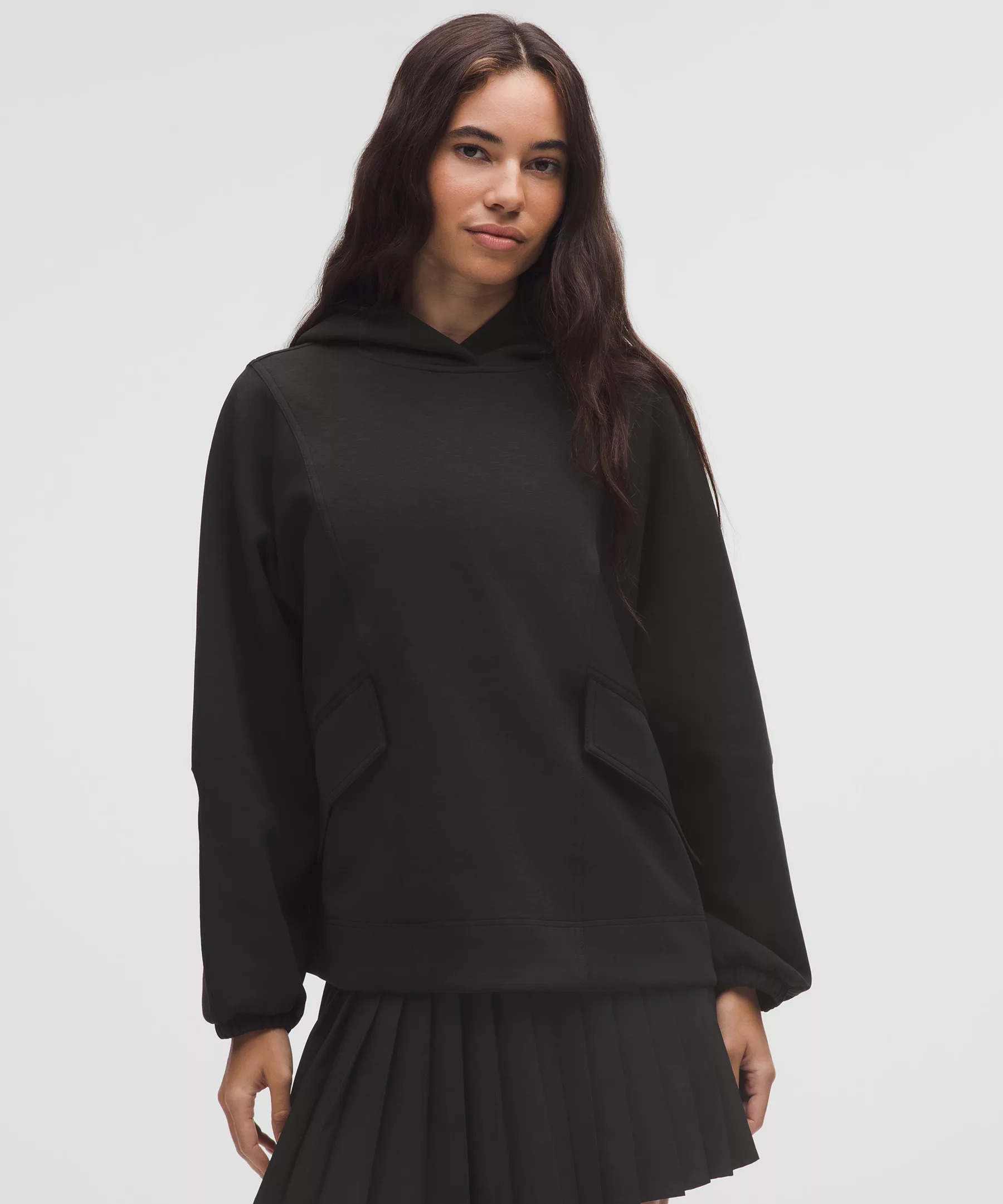 Designed for Casual Structured, Double-Knit Fabric - Weighty and structured - Sweat-wicking - Quick-drying - Cottony-soft exterior and a cool, smooth feel next to skin Oversized Fit, Hip Length - An exaggerated fit that feels extra roomy - Sits below the waistband for moderate, everyday coverage Product Features - Kangaroo pocket with hidden phone sleeve - Internal drawcord at the hem lets you customize your fit Material and care Materials Body: 86% Recycled Polyester14% Elastane - Liner: 89% Recycled Polyester11% Lycra Elastane Care Machine Wash Cold - Do Not Bleach - Tumble Dry Low - Do Not Iron - Do Not Dry Clean - Wash With Like Colors
