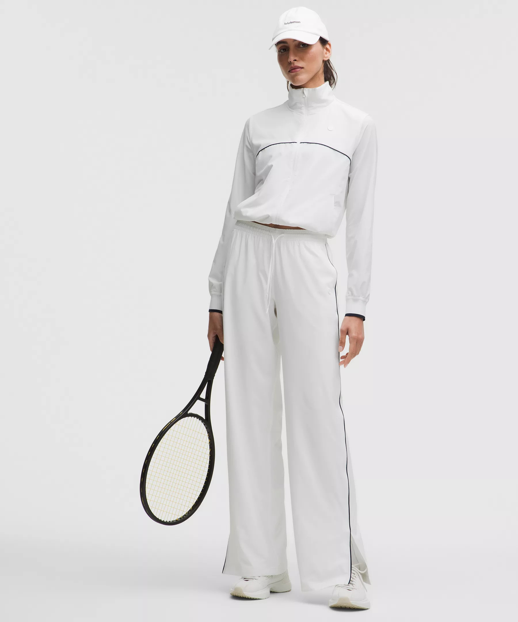 Designed for Tennis Sweat-Wicking, Swift Fabric - Sweat-wicking - Four-way stretch - Quick-drying - UV protective - UPF 40+ provides very good UV protection to only covered areas. This item's protection may be reduced with use, or if it gets stretched or wet. Sun exposure causes skin damage Lined for Coverage, Mid Rise, Full Length - Relaxed fit is roomy through glutes and thighs - Sits away from body, hip to hem - 34.5" inseam, intended to sit below ankle for heights of 5'9" and above - Lined for extra coverage Product Features - Hand pockets with hidden card sleeve - Drawcord to customize fit Material and care Materials Pocket Lining: 100% Recycled Polyester - Lining: 86% Polyester14% Elastane - Body: 86% Polyester14% Elastane Care Machine Wash Cold - Do Not Bleach - Tumble Dry Low - Do Not Iron - Do Not Dry Clean - Wash With Like Colors