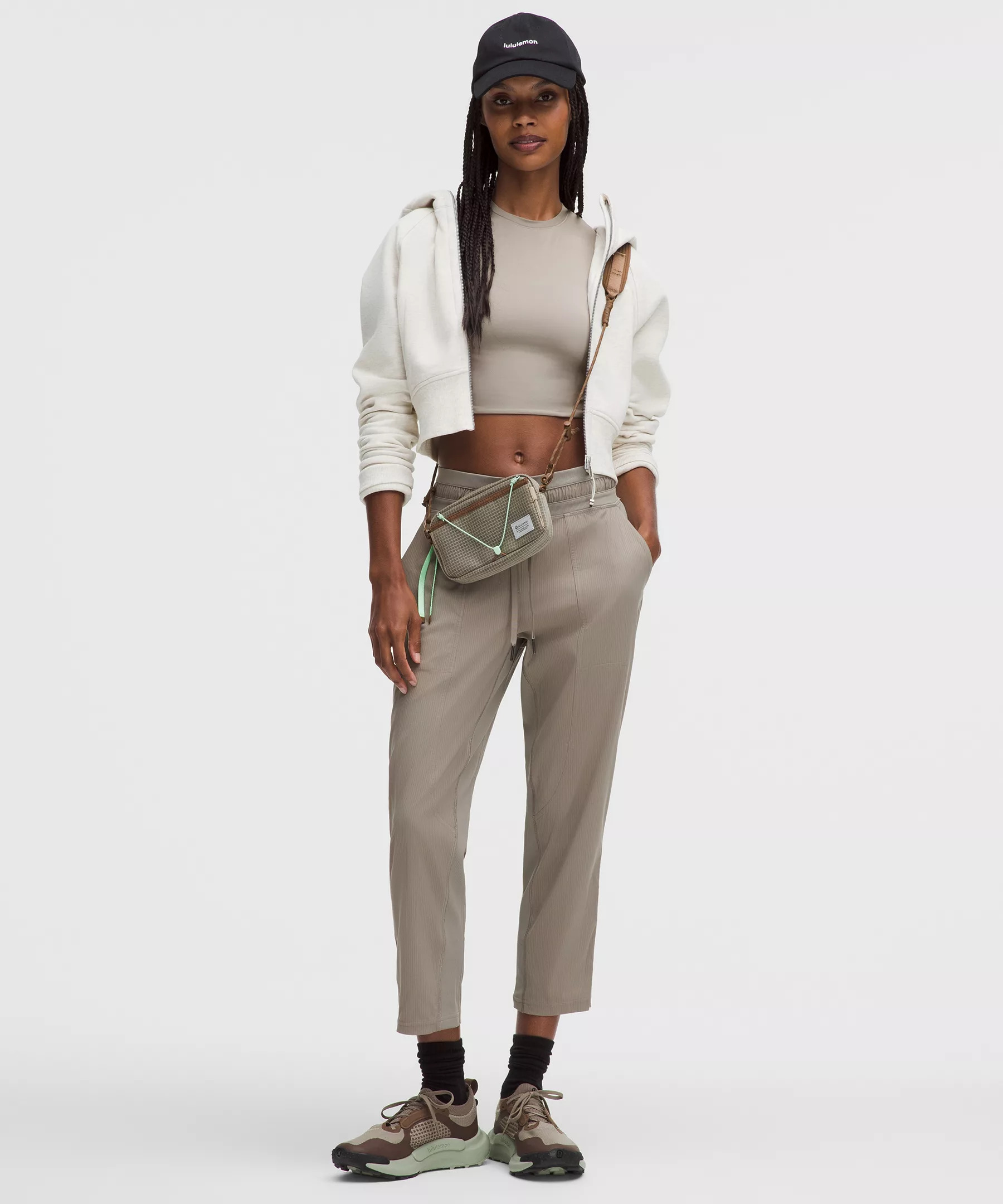 Designed for Casual Lightweight, Swift Fabric - Lightweight - Two-way stretch Mid Rise, Cropped Length - Classic fit is an easy fit that floats away from your body - Intended to sit below calf Product Features - Waistband drawcord helps you customize the fit - Hand pockets, one with a hidden card sleeve - Gusset is placed to allow increased mobility - Cinchable hem Material and care Materials Body: 94% Nylon6% Elastane - Waistband: 88% Nylon12% Lycra Elastane Care Machine Wash Cold - Do Not Bleach - Tumble Dry Low - Do Not Iron - Do Not Dry Clean - Wash With Like Colors