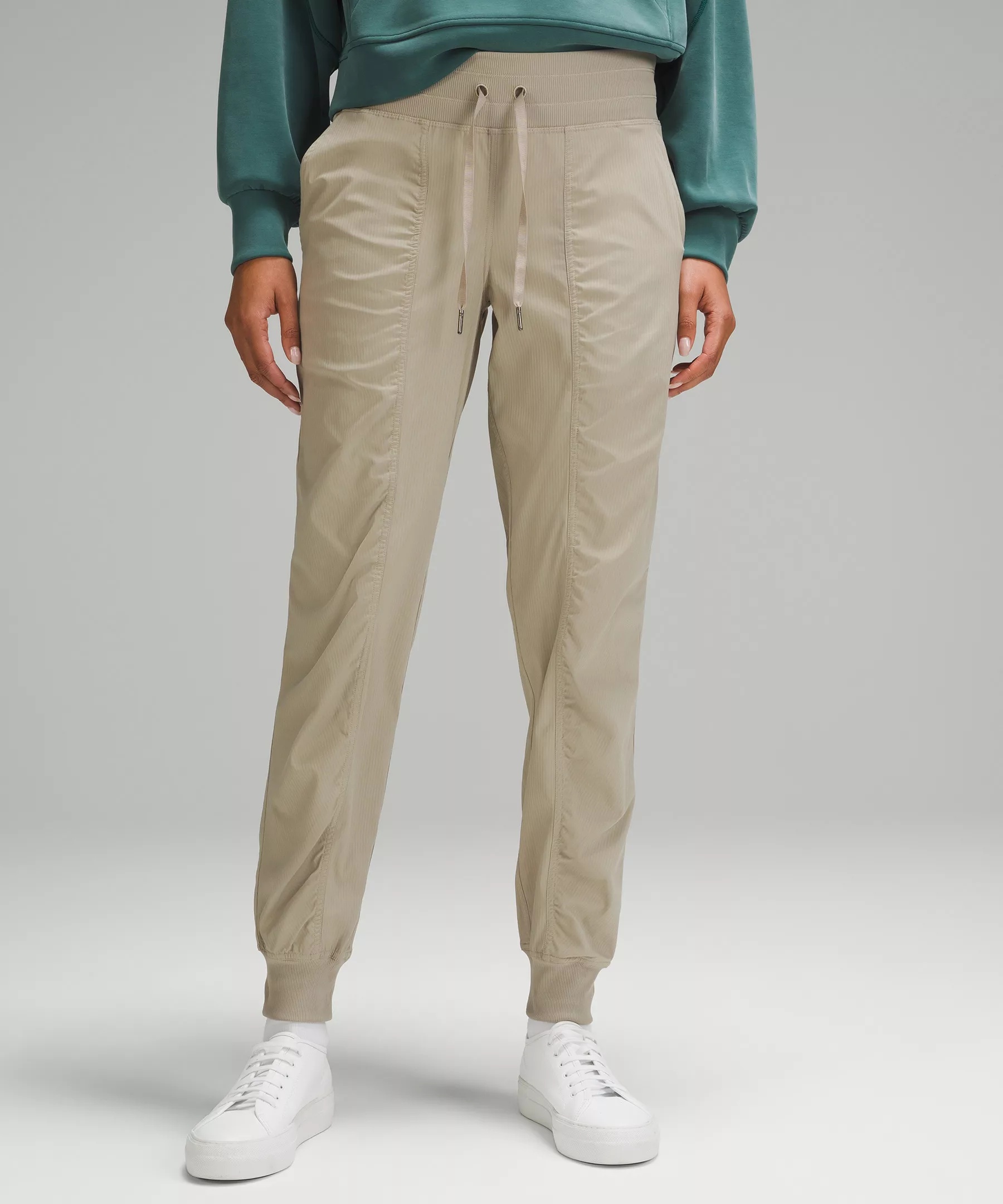 Lightweight, Swift Fabric Lightweight Two-way stretch Mid Rise, Full Length Full length intended to sit at ankle Product Features Hand pockets with hidden pocket for small items Waistband drawcord helps you customize the fit Material and care Materials Pocket Lining: 86% Recycled Polyester14% Elastane Waistband: 88% Nylon12% Lycra Elastane Body: 94% Nylon6% Elastane
