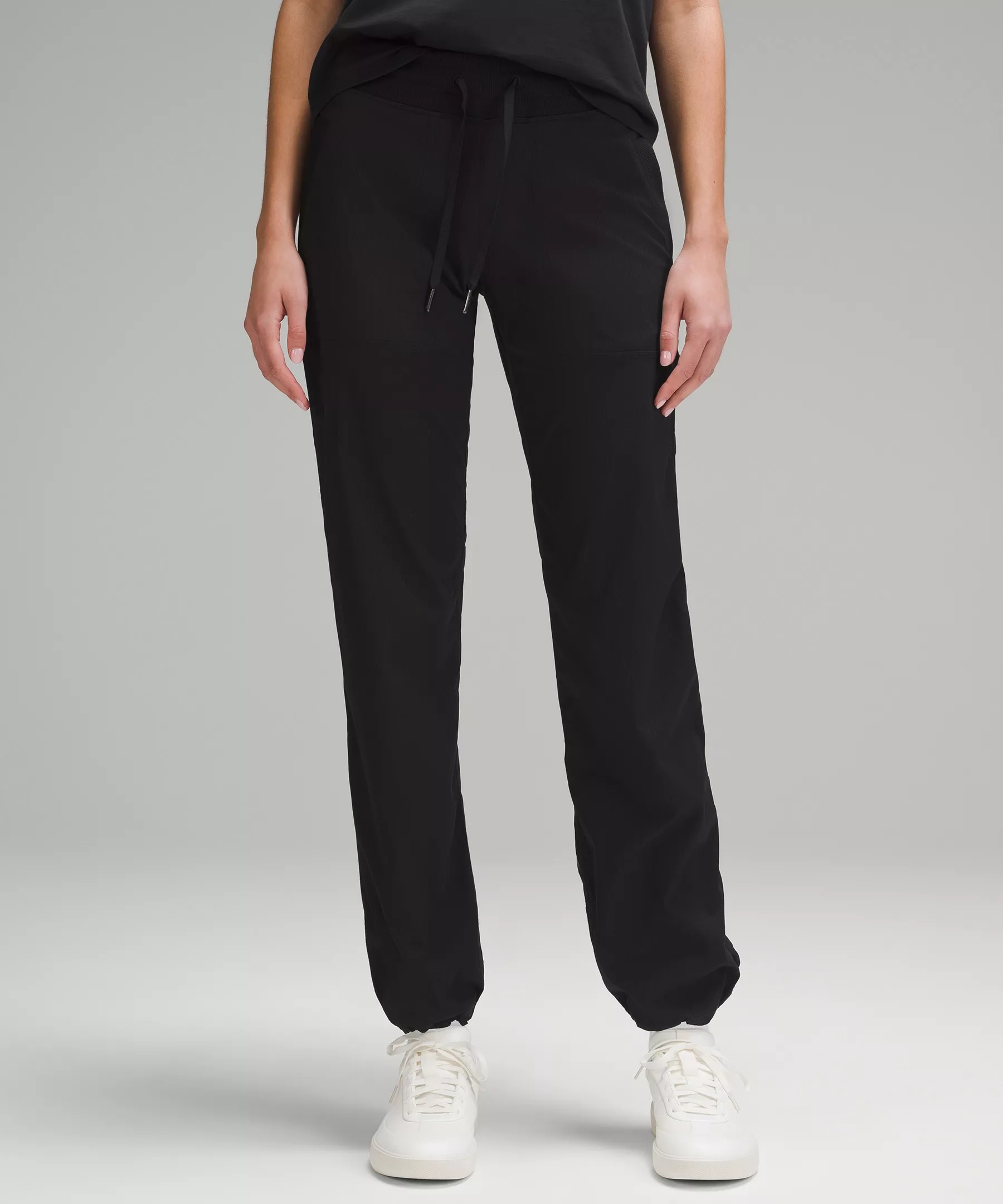 Lightweight, Swift Fabric Lightweight Two-way stretch Wear this light colour with confidence. Our white and light colours are lined with sweat-wicking Coolmax® fabric for coverage. The liner adds a thicker feel. Mid Rise, Full Length Classic fit is an easy fit that floats away from your body 33.5" inseam, intended to sit below the ankle for heights of 5'9" and above Product Features Waistband drawcord helps you customize the fit Hand pockets with hidden pocket for small items Care Wash with like colours Machine wash cold Do not bleach Tumble dry low Do not iron Do not dry clean Imported