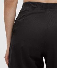 Lightweight, Swift Fabric Lightweight Two-way stretch High Rise, Full Length Slim fit skims your body Flares out from the knee to hem Full length intended to sit at ankle Product Features Waistband lies flat and won't dig in Elastic waistband has a soft brushed interior Faux fly Hand pockets with hidden pocket for small items Material and care Materials Pocket Lining: 86% Recycled Polyester14% Elastane Body: 94% Nylon6% Elastane Care Wash with like colours Machine wash cold Do not bleach Tumble dry low Do not iron Do not dry clean