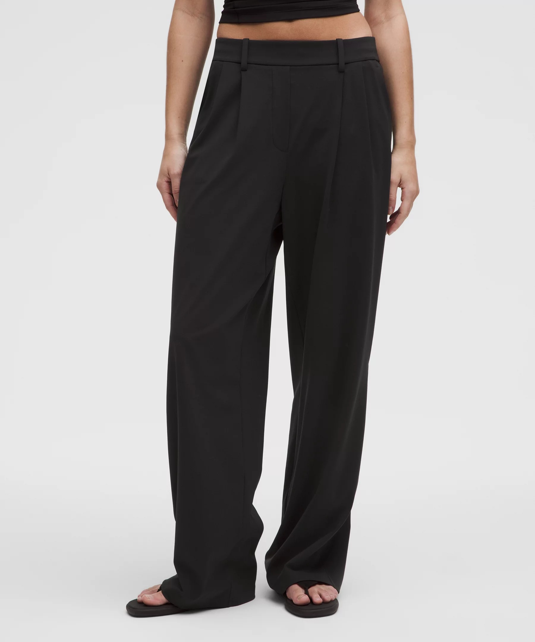 Sweat-Wicking, Luxtreme™ Fabric Sweat-wicking Four-way stretch Breathable Feels cool to the touch Added Lycra® fibre for stretch and shape retention High Rise, Full Length Relaxed fit is roomy through glutes and thighs 29.5" inseam, intended to skim the floor for heights of 5'4" and under Product Features Hand pockets with hidden card sleeve Back welt pockets are stitched closed—snip open to use Cinch the interior drawcord to customize your fit Faux fly Material and care Materials Pockets: 86% Recycled Polyester14% Elastane Body: 69% Nylon31% Lycra Elastane Care Wash with like colours Machine wash cold Do not bleach Tumble dry low Do not iron Do not dry clean