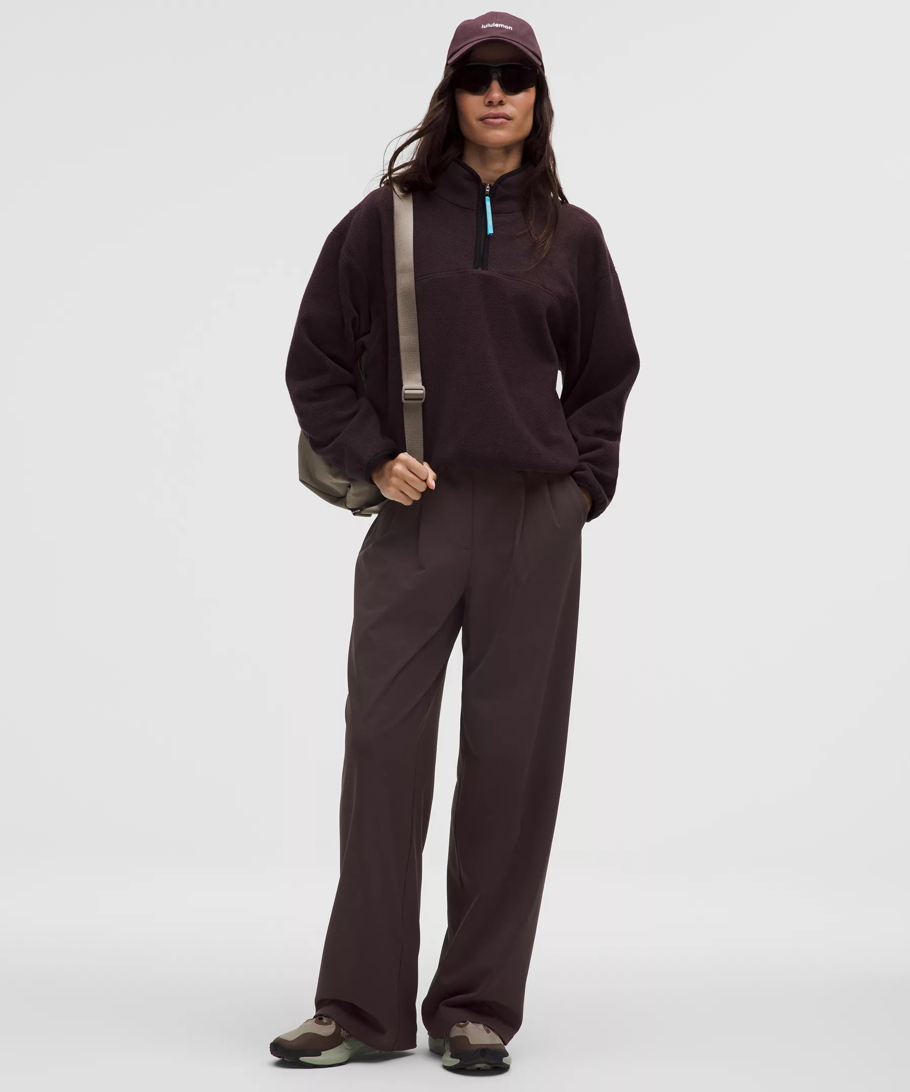 Designed for Casual Sweat-Wicking, Luxtreme™ Fabric - Sweat-wicking - Four-way stretch - Breathable - Feels cool to the touch - Added Lycra® fibre for stretch and shape retention High Rise, Full Length - Relaxed fit is roomy through glutes and thighs - 35" inseam, intended to skim the floor for heights of 5'9" and above Product Features - Hand pockets, one with a card sleeve - Back welt pockets are stitched closed—snip open to use - Cinch the interior drawcord to customize your fit - Faux fly - Functional belt loops Material and care Materials Pockets: 86% Recycled Polyester14% Elastane - Body: 69% Nylon31% Lycra Elastane Care Machine Wash Cold - Do Not Bleach - Tumble Dry Low - Low Iron If Needed - Do Not Dry Clean - Wash With Like Colors