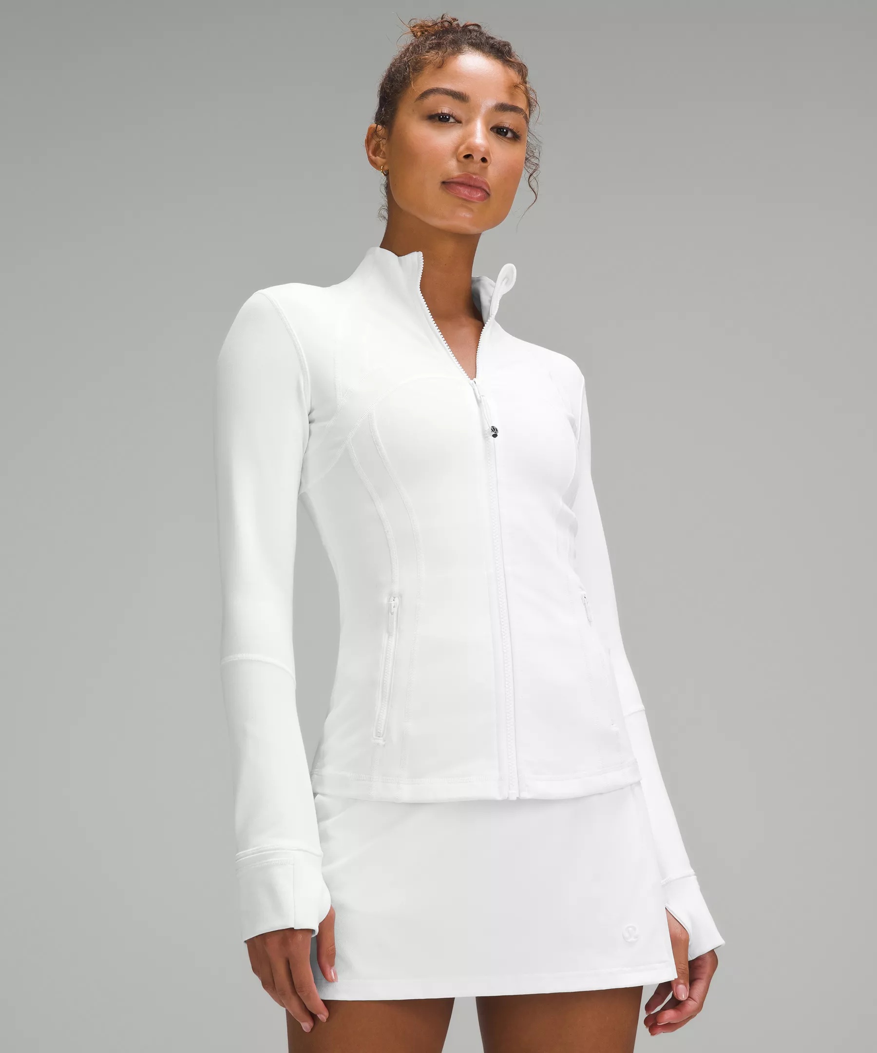 Cottony-Soft Feel, Luon™ Fabric Cottony soft Sweat-wicking Four-way stretch Supportive Breathable Added Lycra® fibre for stretch and shape retention Slim Fit, Hip Length Skims your body Sits below the waistband for moderate, everyday coverage Product Features Zippered pockets Thumbholes and Cuffins™ keep sleeves down and chills out Locker loop for easy hanging Zipper garage keeps chafe in check Elastic zipper pull doubles as an emergency hair tie Material and care Materials Body: 87% Nylon13% Lycra® elastane Lining: 89% Nylon11% Elastane Care Wash with like colours Machine wash cold Do not bleach Tumble dry low Do not iron Do not dry clean Imported