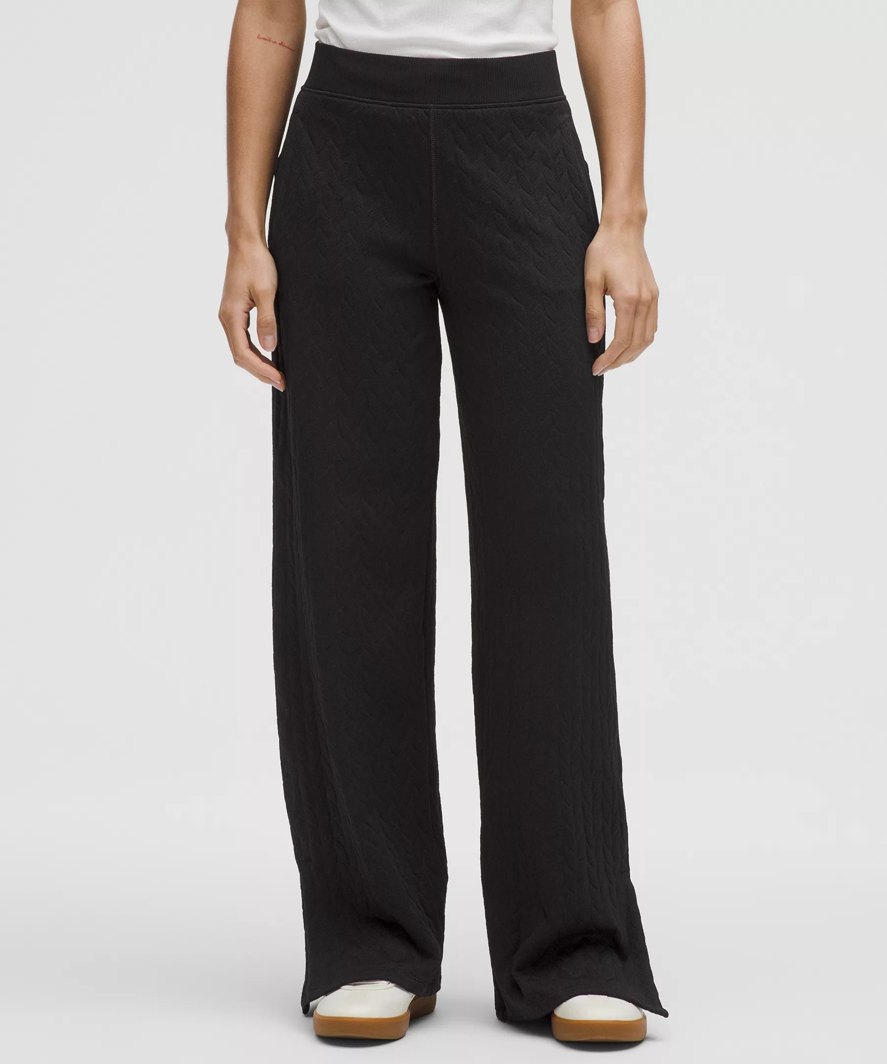 Designed for Casual Smoothly Textured, Cable-Knit Fabric - Smoothly textured - Soft - Four-way stretch - Soft loops of 100% merino wool on the inside are naturally thermoregulating and warm - Be gentle and treat with care. Please refer to the material and care section below for full fibre content information and wash instructions Mid Rise, Full Length - Relaxed fit is roomy through glutes and thighs - Full length intended to sit at ankle Product Features - Hand pockets Material and care Materials All: 41% Nylon29% Polyester27% Merino Wool3% Elastane Care Wash Separately - Do Not Bleach - Lay Flat To Dry - Do Not Iron - Do Not Dry Clean - Wash Separately