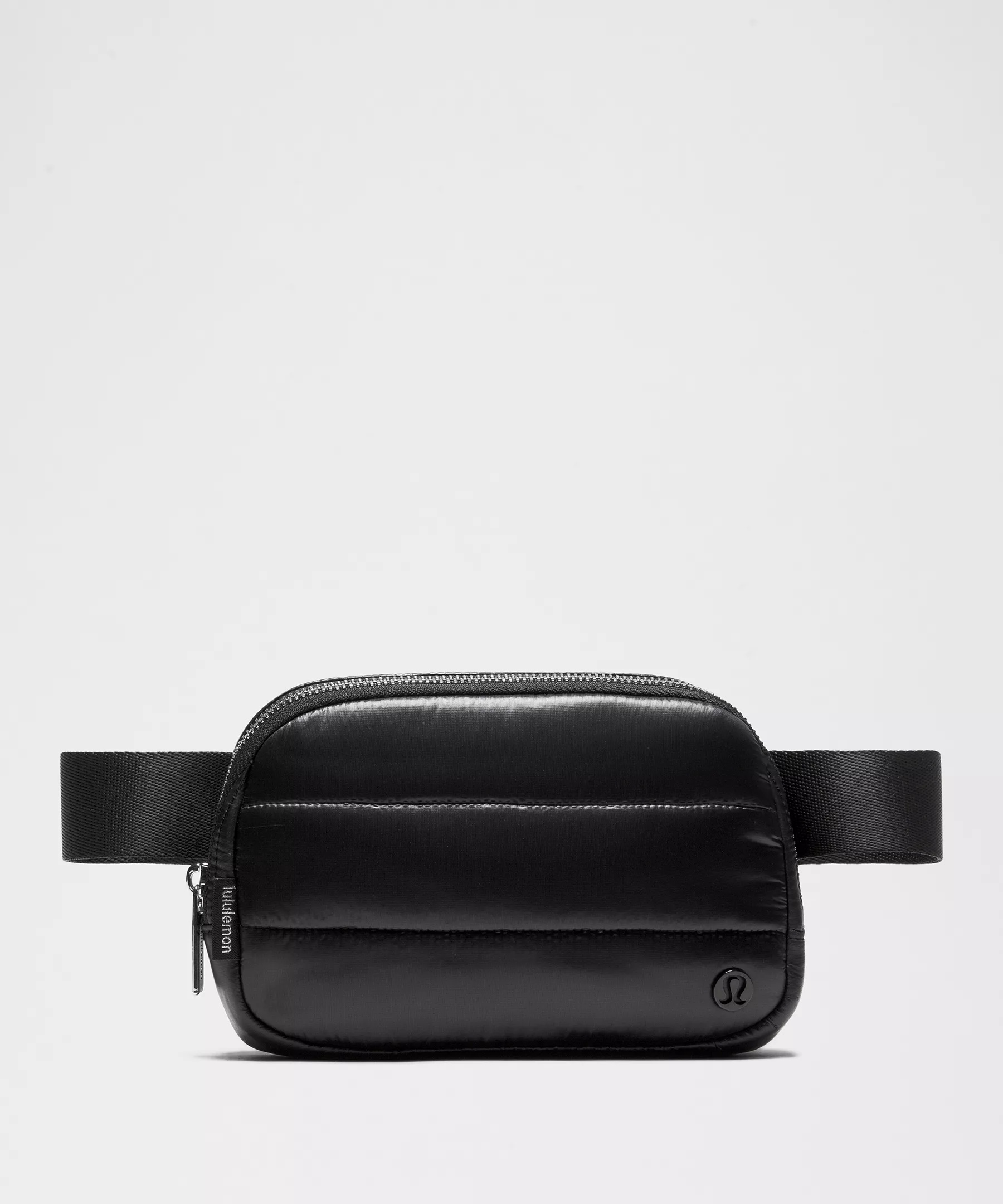 Water-Repellent Fabric Water-repellent Fabric has a glossy shine Measurements Bag dimensions: 19cm x 5cm x 13cm (7.5" x 2" x 5") Strap length when fully extended: 106cm (41.7”) Volume: 1L Product Features Adjustable strap Exterior zippered pocket to secure your valuables Interior pockets hold the essentials Once you find your perfect fit, tuck the excess belt bag strap into the elastic loops Material and care Materials Mesh: 100% Recycled Polyester Lining: 100% Recycled Polyester Body: 100% Nylon Care Spot clean Do not wash Do not bleach Do not tumble dry Do not iron Do not dry clean Imported