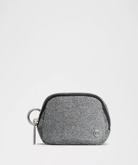 Designed for Casual Shimmery, Glitter Fabric - Please take extra care with this special fabric as tiny flecks of glitter may transfer Measurements - Dimensions: W 10.5cm x D 3.5cm x H 8cm (4.1" x 1.4" x 3.2") Product Features - Adjustable wrist strap unhooks on one end so you can attach it to your bag or other items - D-ring clips onto your favourite bag - Interior pocket for small items - Zippered main compartment Material and care Materials Mesh: 100% Polyester (recycled) - Lining: 100% Polyester (recycled) - Body: Face: 54% Metallic, 46% PolyesterBack: 100% Polyester Care Do Not Wash - Do Not Bleach - Do Not Tumble Dry - Do Not Iron - Do Not Dry Clean - Spot Clean