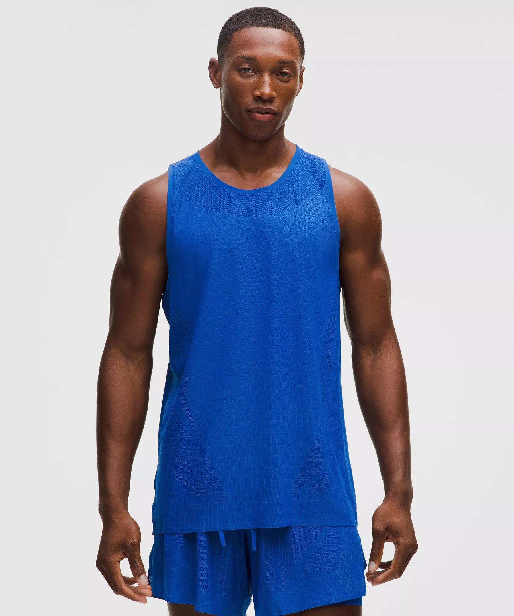 Designed for Running Slightly Sheer, Lightweight Mesh Fabric - Slightly sheer - Four-way stretch - Quick-drying - Targeted zones of breathability - Lightweight Classic Fit - Designed with room in the chest and at the waist Product Features - A reflective design effect is seamlessly knit into the fabric and shines bright under a camera flash - Racerback cut gives your shoulders full range of movement Material and care Materials Front Panel: 85% Nylon15% Elastane - Back Panel: 85% Nylon13% Elastane2% Polyester Care Machine Wash Cold - Do Not Bleach - Tumble Dry Low - Do Not Iron - Do Not Dry Clean - Wash With Like Colors