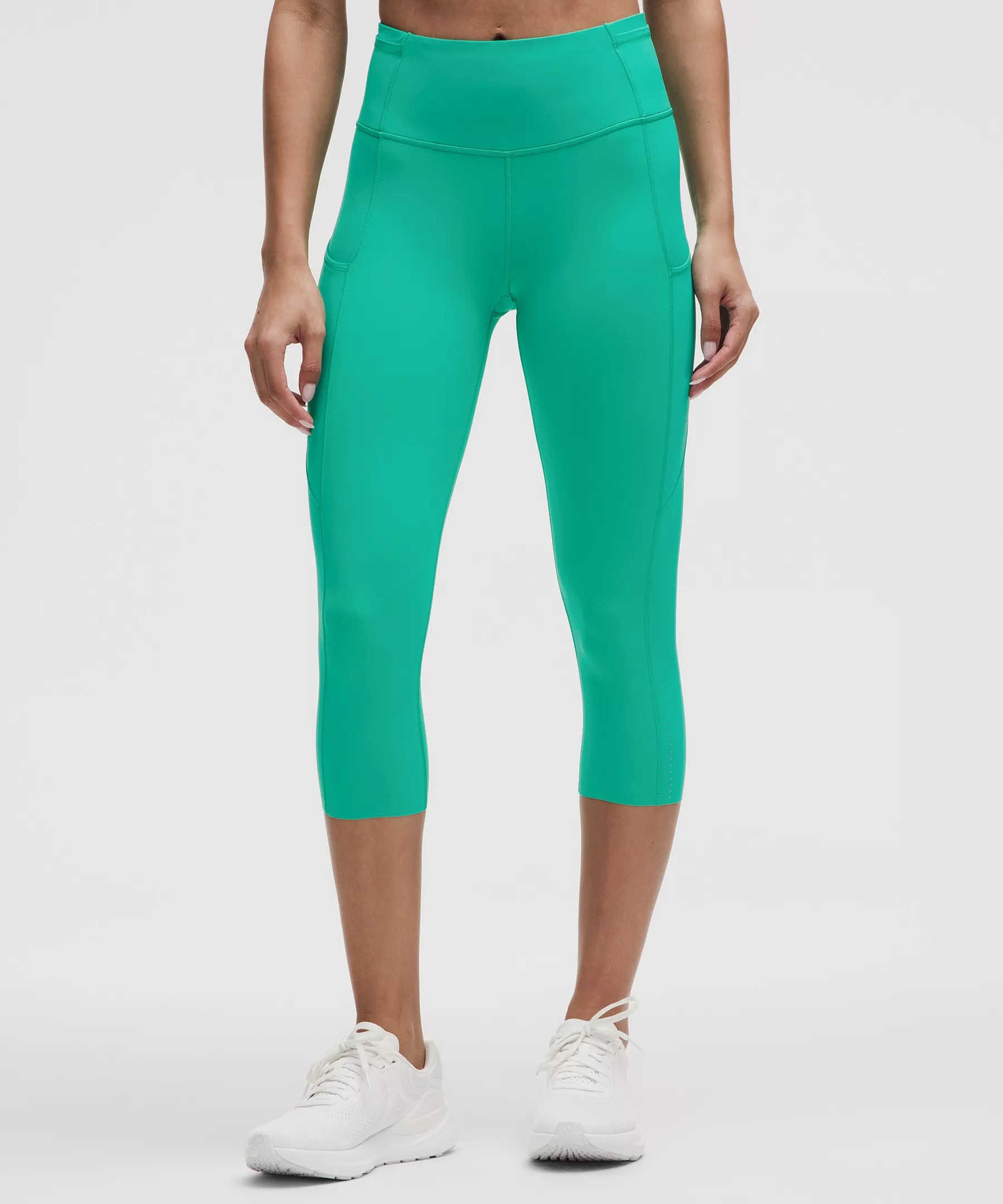 Designed for Running Weightless Coverage, Nulux™ Fabric - Weightless coverage that passes the squat test - Engineered four-way stretch - Quick-drying - Sweat-wicking - Feels sleek and cool to the touch - Added Lycra® fibre for stretch and shape retention - UV protective - UPF 40+ provides very good UV protection to only covered areas. This item's protection may be reduced with use, or if it gets stretched or wet. Sun exposure causes skin damage High Rise, 19" Length - Intended to sit at mid-calf Product Features - Two side drop-in pockets fit your phone - Five drop-in pockets on the waistband hold small items - The tighter waistband and continuous drawcord help keep your leggings in place so you don't have to pull them up mid-run - Reflective details Material and care Materials Body: 84% Nylon16% Lycra Elastane - Waistband Lining: 89% Nylon11% Elastane Care Machine Wash Cold - Do Not Bleach - Tumble Dry Low - Do Not Iron - Do Not Dry Clean - Wash With Like Colors