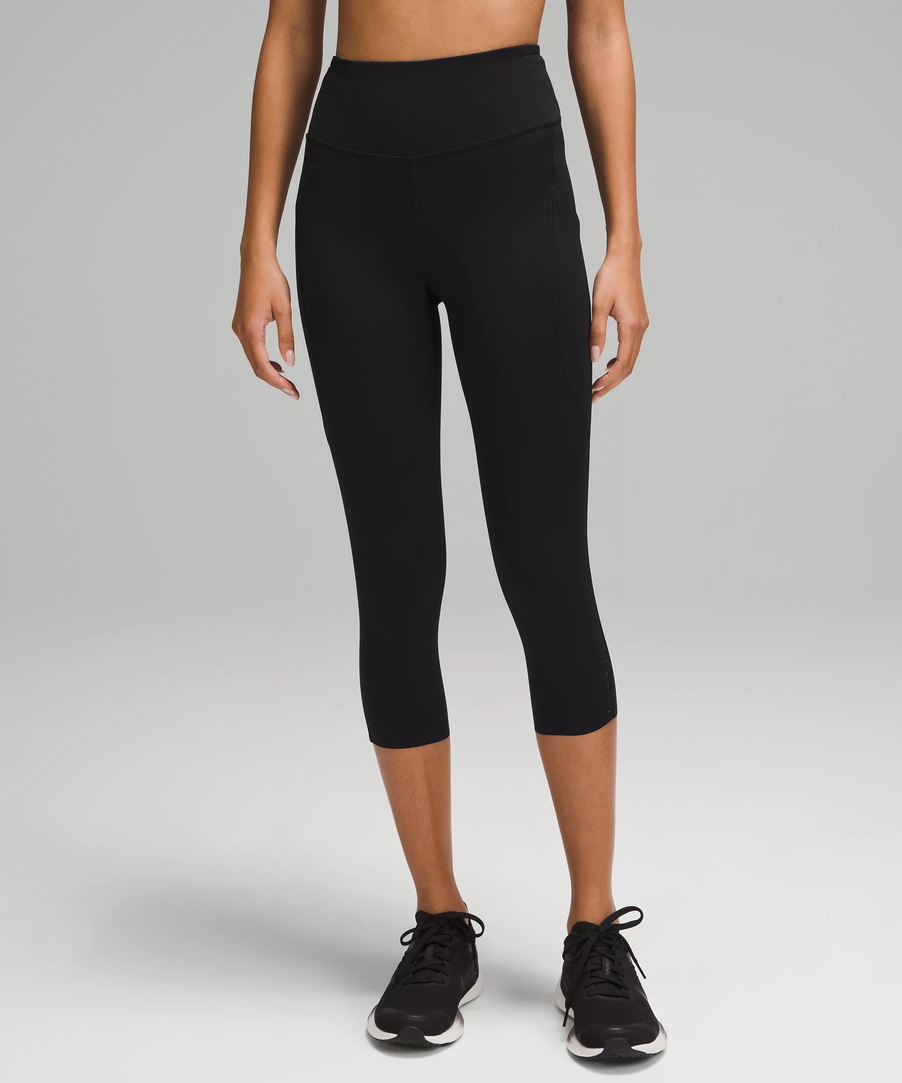 Weightless Coverage, Nulux™ Fabric Weightless coverage Engineered four-way stretch Quick-drying Sweat-wicking Breathable Feels sleek and cool to the touch Added Lycra® fibre for stretch and shape retention High Rise, 19" Length Intended to sit at mid-calf Product Features Two side drop-in pockets fit your phone Three drop-in pockets on the waistband hold small items The tighter waistband and continuous drawcord help keep your leggings in place so you don't have to pull them up mid-run Reflective details Material and care Materials Body: 84% Nylon16% Lycra® elastane Inner waistband: 89% Nylon11% Elastane Care Wash with like colours Machine wash cold Do not bleach Tumble dry low Do not iron Do not dry clean Imported