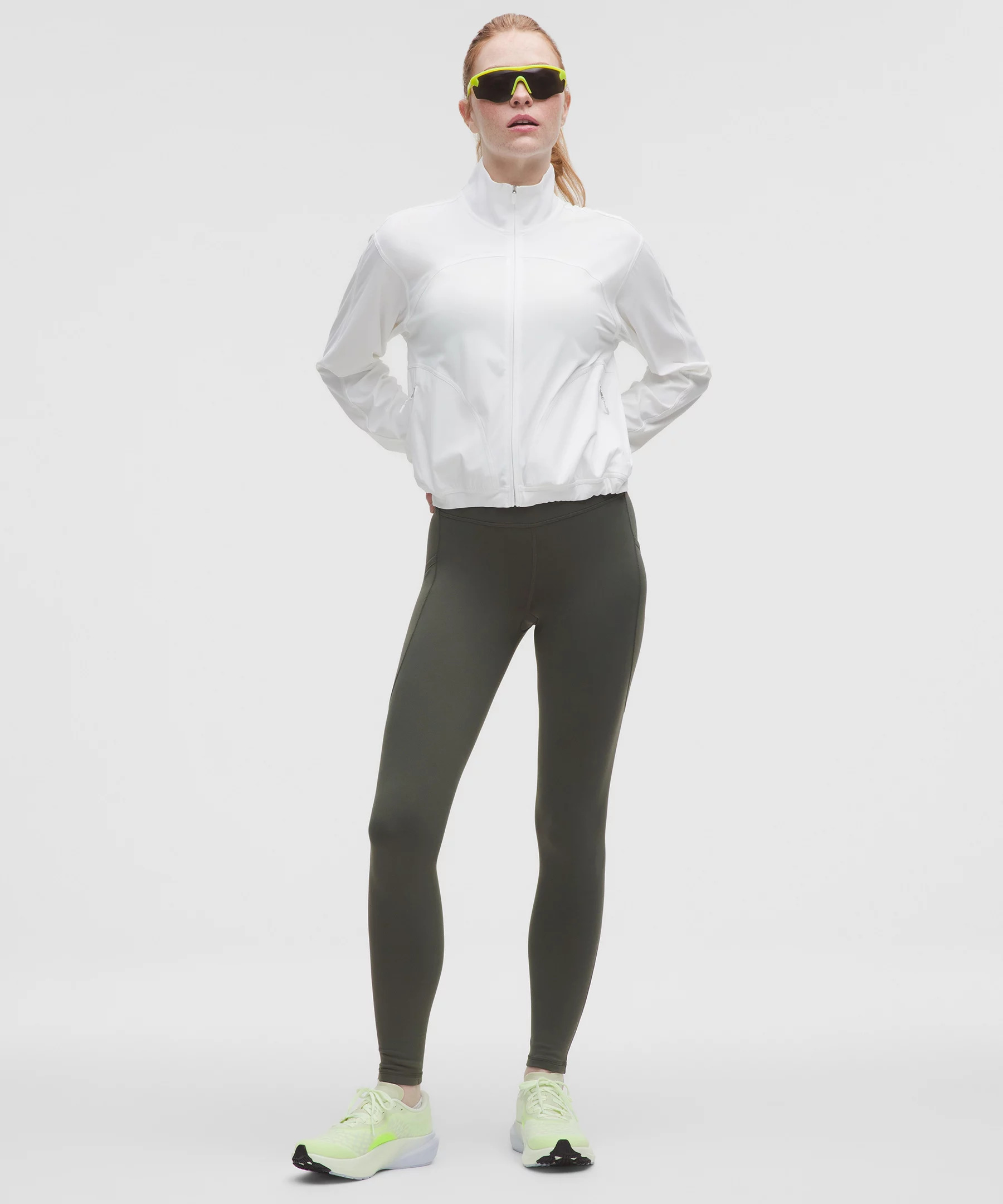 Designed for Running Soft and Warm, Brushed Fabric - Warm - Soft brushed interior - Four-way stretch - Sweat-wicking - Quick-drying - Added Lycra® fibre for stretch and shape retention - 100% of the polyester in this product is recycled (excluding trims) High Rise, 28" Length - Full length intended to sit at ankle Product Features - Two side drop-in pockets on the legs fit your phone - Three drop-in pockets on the waistband hold small items - Continuous drawcord is easy to cinch, won't get lost in the wash, and helps keep your leggings in place so you don't have to pull them up mid-run - No inseam for a smooth stride - Reflective details Material and care Materials Body: 87% Recycled Polyester13% Lycra Elastane - Waistband Lining: 89% Nylon11% Elastane Care Machine Wash Cold - Do Not Bleach - Tumble Dry Low - Do Not Iron - Do Not Dry Clean - Wash With Like Colors