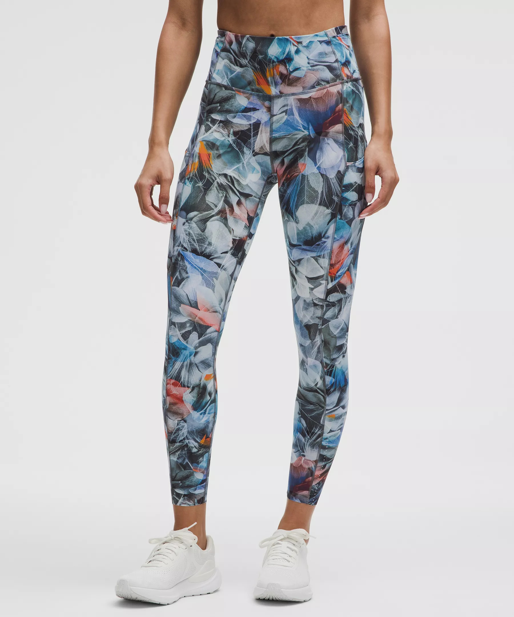 Designed for Running Weightless Coverage, Nulux™ Fabric - Weightless coverage that passes the squat test - Engineered four-way stretch - Quick-drying - Sweat-wicking - Feels sleek and cool to the touch - Added Lycra® fibre for stretch and shape retention High Rise, 25" Length - Intended to sit above ankle Product Features - Two side drop-in pockets fit your phone - Five drop-in pockets on the waistband hold small items - The tighter waistband and continuous drawcord help keep your leggings in place so you don't have to pull them up mid-run - Reflective details Material and care Materials Body: 84% Nylon16% Lycra Elastane - Waistband Lining: 89% Nylon11% Elastane Care Machine Wash Cold - Do Not Bleach - Tumble Dry Low - Do Not Iron - Do Not Dry Clean - Wash With Like Colors