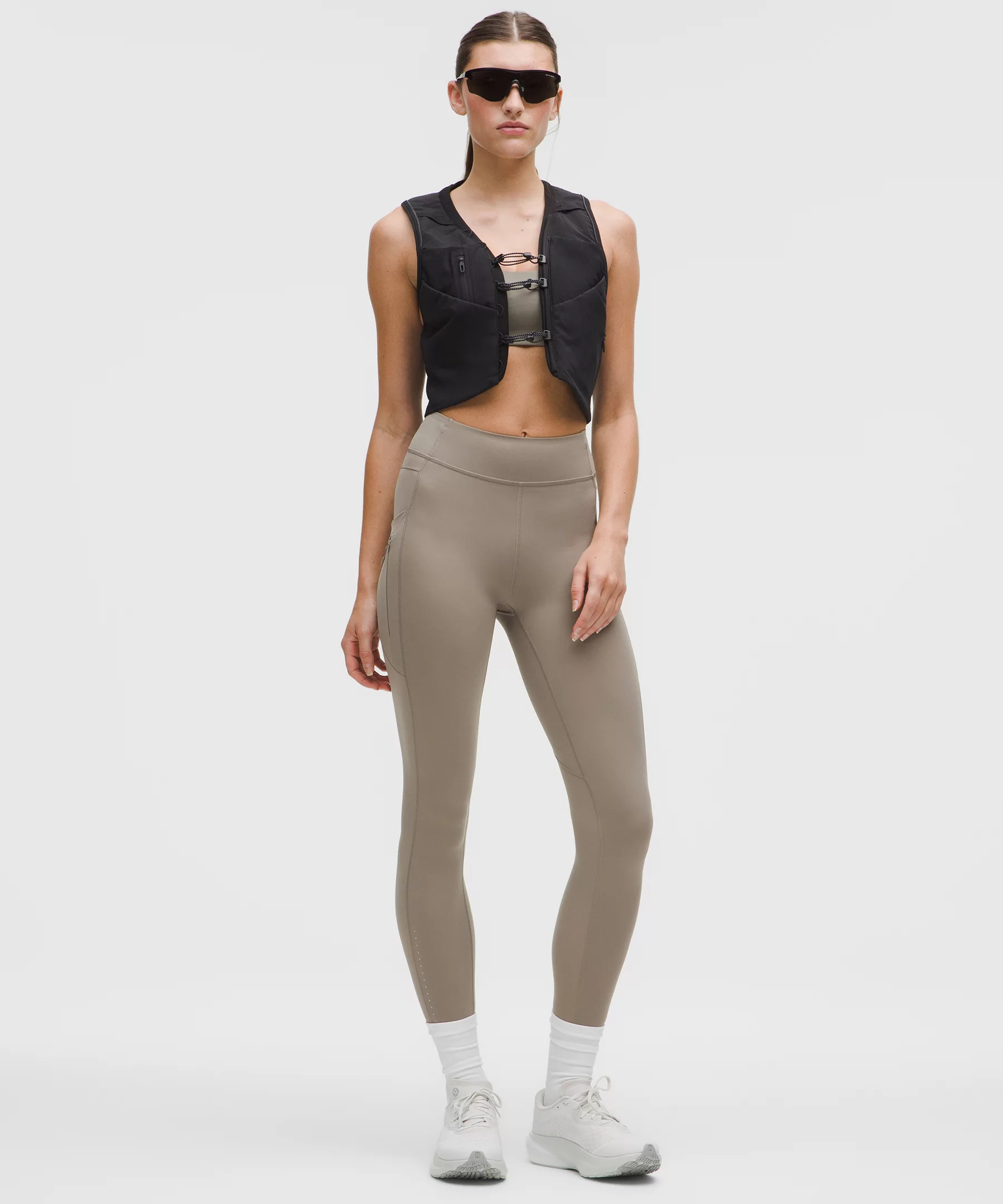 Designed for Running Weightless Coverage, Nulux™ Fabric - Weightless coverage - Quick-drying - Sweat-wicking - Feels sleek and cool to the touch - Ultralight fabric panels are naturally breathable and quick-drying - UV protective - UPF 40+ provides very good UV protection to only covered areas. This item’s protection may be reduced with use, or if it gets stretched or wet. Sun exposure causes skin damage High Rise, 25" Length - Intended to sit above ankle Product Features - Six pockets: three in the waistband and three on the legs - Continuous drawcord - Loop extra layers under the bartack on the centre-back waistband pocket - Reflective details - Bonded seams reduce bulk Material and care Materials Outer Waistband: 82% Nylon18% Elastane - Inner Waistband: 84% Nylon16% Lycra Elastane - Lower Panel: 82% Nylon18% Elastane - Pocket Lining: 64% Nylon36% Elastane - Body: 84% Nylon16% Lycra Elastane Care Machine Wash Cold - Do Not Bleach - Tumble Dry Low - Do Not Iron - Do Not Dry Clean - Europe - UV Protection - Wash With Like Colors