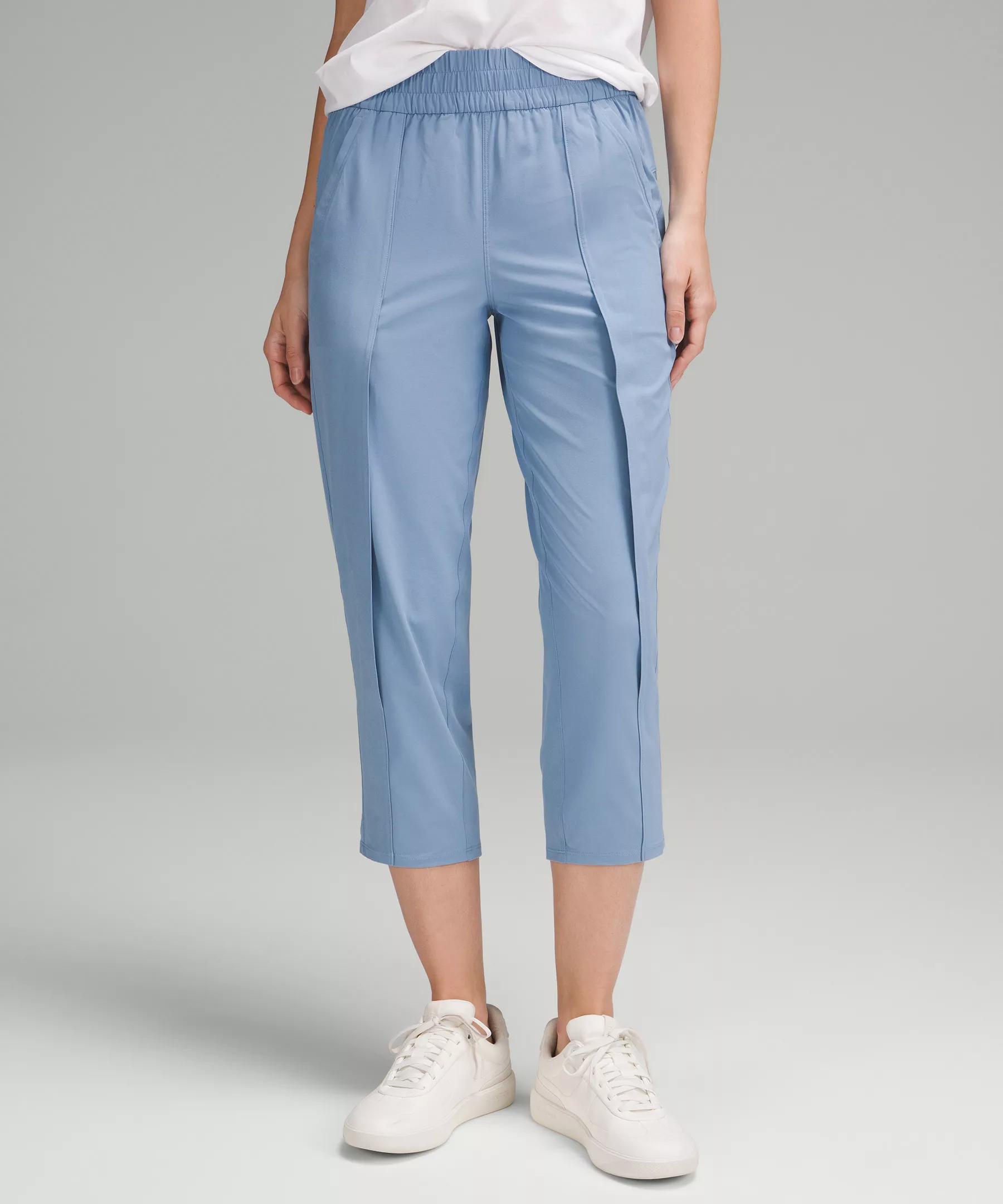 Designed for Casual Lightweight, Swift Fabric - Lightweight - Four-way stretch - Sweat-wicking - Quick-drying Mid Rise, Cropped Length - Relaxed fit is roomy through glutes and thighs - Tapered from knee to hem - Intended to sit below calf Product Features - Hand pockets - Elastic waistband Material and care Materials All: 86% Recycled Polyester14% Elastane Care Machine Wash Cold - Do Not Bleach - Tumble Dry Low - Do Not Iron - Do Not Dry Clean - Wash With Like Colors