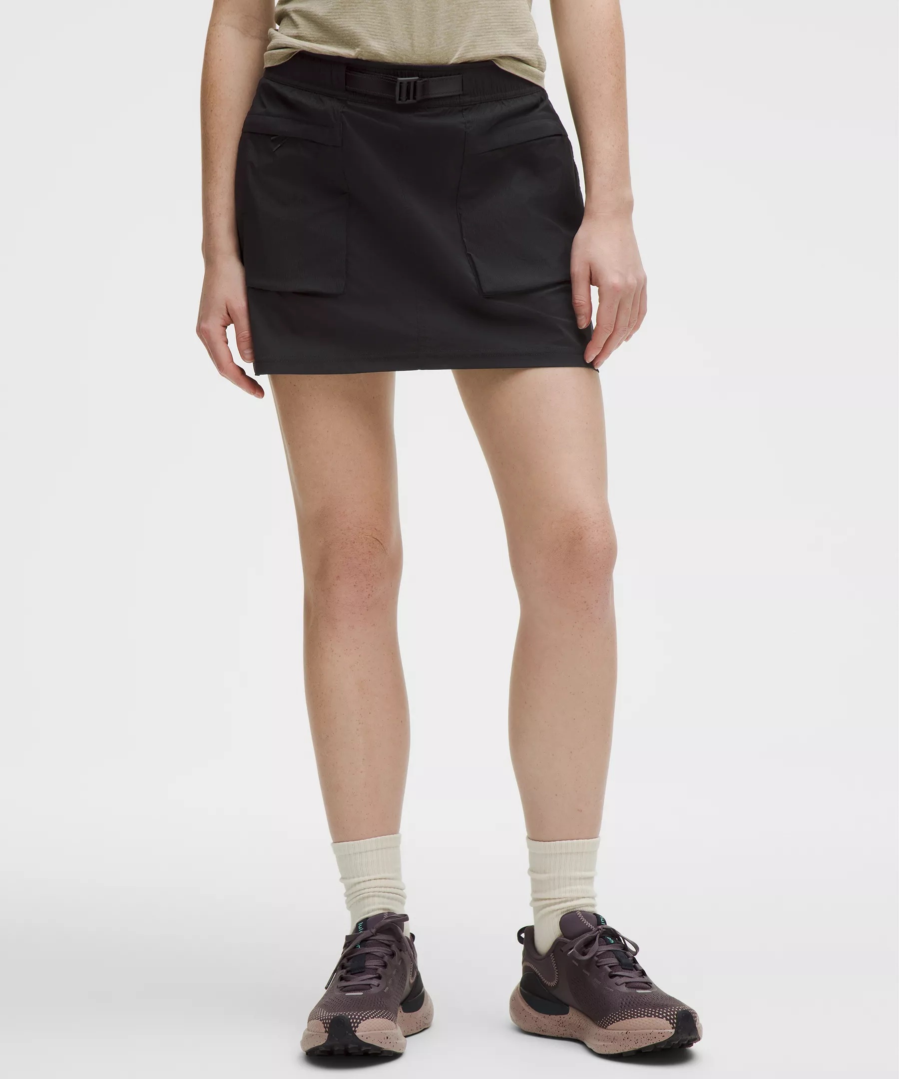 Designed for Hiking Water-Resistant, Glyde™ Fabric - Water-resistant - Lightweight - Abrasion-resistant - Wind-resistant - Two-way stretch - Built-in Luxtreme™ fabric liner is sweat-wicking and four-way stretch with a cool, smooth feel Product Features - Integrated adjustable belt - Attach carabiners to the waistband loops - Zippered hand pockets - Built-in liner offers extra coverage Material and care Materials Body: 94% Recycled Nylon6% Elastane - Front Lining: 87% Nylon13% Lycra Elastane - Back Lining: 69% Nylon31% Lycra Elastane - Pocket Lining: 86% Recycled Polyester14% Elastane - Pocket: 93% Nylon7% Spandex Care Machine Wash Cold - Do Not Bleach - Tumble Dry Low - Do Not Iron - Do Not Dry Clean - Wash With Like Colors