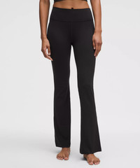 Designed for Yoga and Casual Feels Buttery-Soft and Weightless, Nulu™ Fabric - So buttery soft, it feels weightless - Four-way stretch - Sweat-wicking - Breathable - Added Lycra® fibre for stretch and shape retention High Rise, Full Length - Hugs your body from waist to knee - Flares out from the knee to hem - 30" inseam, intended to skim the floor for heights of 5'4" and under Product Features - Back drop-in waistband pocket holds a card, key, or cell phone Material and care Materials Body: 81% Nylon19% Lycra Elastane Care