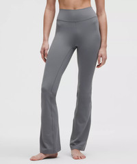 Designed for Yoga and Casual Feels Buttery-Soft and Weightless, Nulu™ Fabric - So buttery soft, it feels weightless - Four-way stretch - Sweat-wicking - Breathable - Added Lycra® fibre for stretch and shape retention High Rise, Full Length - Hugs your body from waist to knee - Flares out from the knee to hem - 32.5" inseam, intended to skim the floor for heights of 5'5"-5'8" Product Features - Back drop-in waistband pocket holds a card, key, or cell phone Material and care Materials Body: 81% Nylon19% Lycra Elastane Care Machine Wash Cold - Do Not Bleach - Tumble Dry Low - Do Not Iron - Do Not Dry Clean - Wash With Like Colors