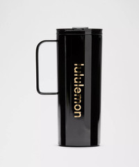 Dimensions and Volume Dimensions: 20cm x 7.5cm (7.9" x 3.0") Volume: 20oz (590ml) Product Features Double walled, stainless steel design keeps your drink hot or cold Ambidextrous, screw-top lid is leakproof Secure lid flap opens and closes easily for one-handed sipping—snap the flap onto to the rim of the lid to keep it out of the way when in use Ergonomically designed handle is comfortable to hold Built-in silicone coaster Fits into most cup holders Care Instructions: Wash before use. Please hand-wash the body of the mug to preserve the finish. Lid is dishwasher safe on top rack only. Do not put in the microwave or freezer Always use caution when handling hot beverages. Do not close the lid if contents exceed 165°F (73°C) Material and care Materials Bottom: 100% Silicone Top: 100% Tritan Copolyester Body: 100% Steel Care Handwash Only
