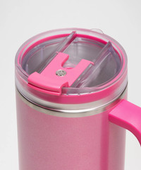 Designed for Casual Dimensions and Volume - Dimensions: 25.4cm height x 7.6cm base (10" height x 3" base) - Volume: 40oz (1.2L) Product Features - Double-walled, stainless steel design keeps your drink ice cold - Stainless steel straw comes with a removable silicone tip - Comfortable ergonomic handle - Ambidextrous screw-top lid has a secure lid flap for quick sips and is leak-proof when straw is removed - Fits most cup holders - Built-in silicone coaster - Care Instructions: Wash before use. Please hand-wash the body of the tumbler to preserve the finish. Lid is dishwasher safe on top rack only. Do not put in the microwave or freezer - Always use caution when handling hot beverages. Do not close the lid if contents exceed 165°F (73°C) Material and care Materials Bottom: 100% Silicone - Top: 100% Tritan Copolyester - Body: 100% Steel - Outer Handle: 100% Polypropylene Care Body - Hand Wash Only - Do Not Use with Hot Water - Lid - Dishwasher Top Rack - Wash Before Use