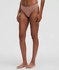 Smooth, Lightweight Fabric Smooth and lightweight A tight knit provides a snug feel and helps prevent slippage Sweat-wicking Quick-drying Four-way stretch Added Lycra® fibre for stretch and shape retention Breathable cotton gusset Mid Rise, Thong Cut Mid rise sits 1” below our mid-rise shorts, crops, pants, and leggings Wide front panel for coverage Material and care Materials Body: 71% Nylon29% Lycra Elastane Gusset: 100% Cotton Care Wash with like colours Machine wash cold Do not bleach Tumble dry low Do not iron Do not dry clean Imported