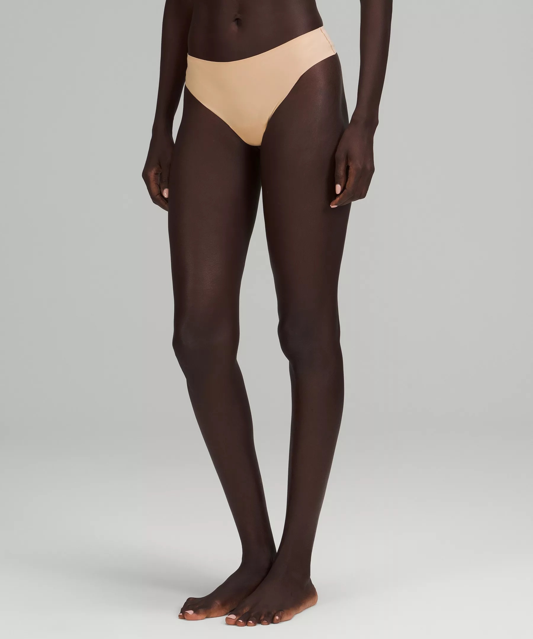 Smooth, Lightweight Fabric Smooth and lightweight A tight knit provides a snug feel and helps prevent slippage Sweat-wicking Quick-drying Four-way stretch Added Lycra® fibre for stretch and shape retention Breathable cotton gusset Mid Rise, Thong Cut Mid rise sits 1” below our mid-rise shorts, crops, pants, and leggings Wide front panel for coverage Material and care Materials Body: 71% Nylon29% Lycra® elastane Gusset: 100% Cotton Care Wash with like colours Machine wash cold Do not bleach Tumble dry low Do not iron Do not dry clean Imported