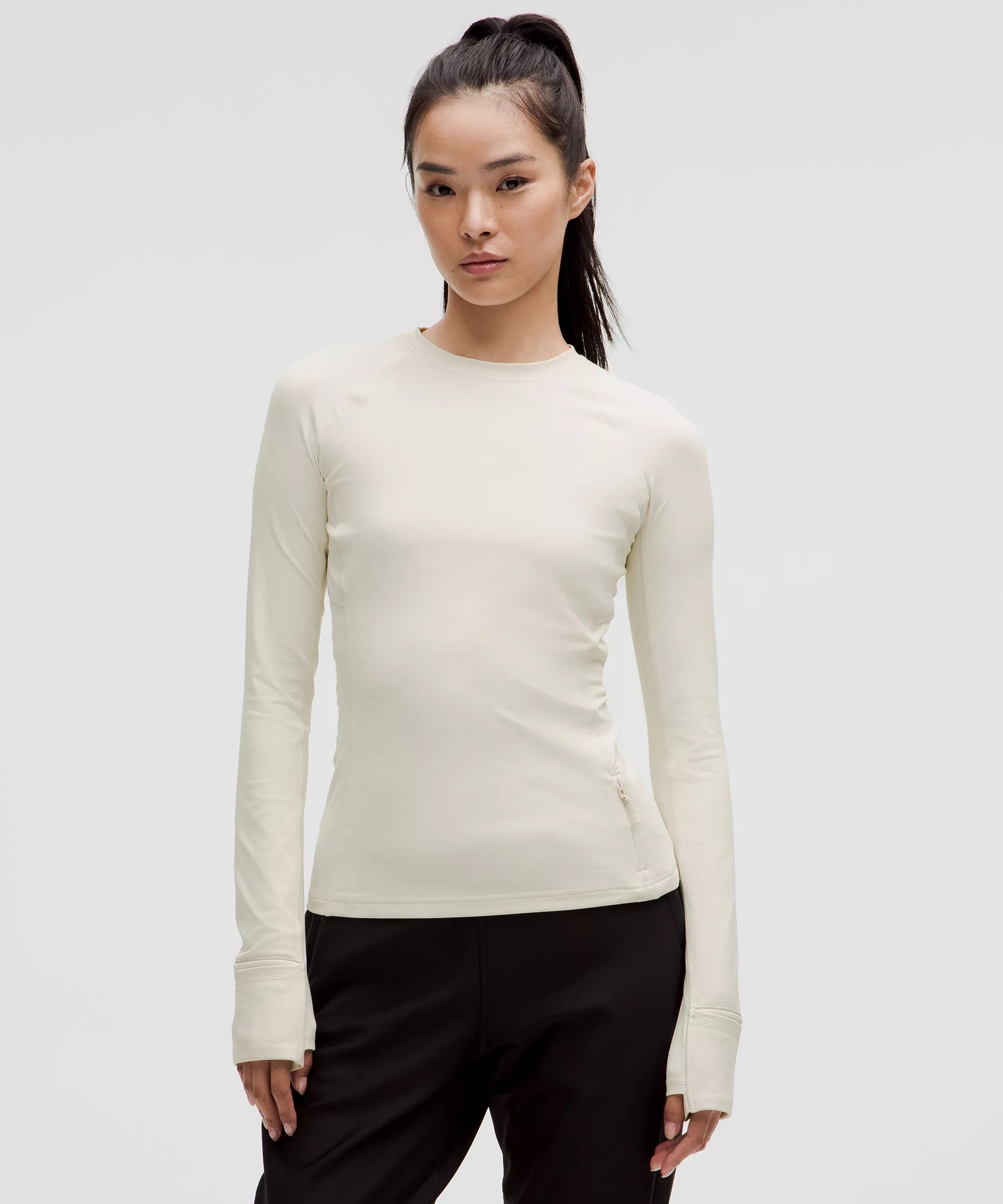 Soft and Warm, Rulu™ Fabric Soft and warm Sweat-wicking Four-way stretch Quick-drying Added Lycra® fibre for stretch and shape retention 100% of the nylon in this product is recycled (excluding trims) Slim Fit, Hip Length Skims your body Sits below the waistband for moderate, everyday coverage Product Features Thumbholes and Cuffins™ keep sleeves down and chills out Zippered pocket keeps your card and keys safe This garment was treated with No-Stink Zinc™ to inhibit the growth of odour-causing bacteria on the fabric Reflective details Material and care Materials Body: 92% Recycled Nylon8% Lycra Elastane Care Wash with like colours Machine wash cold Do not bleach Tumble dry low Do not iron Do not dry clean Imported