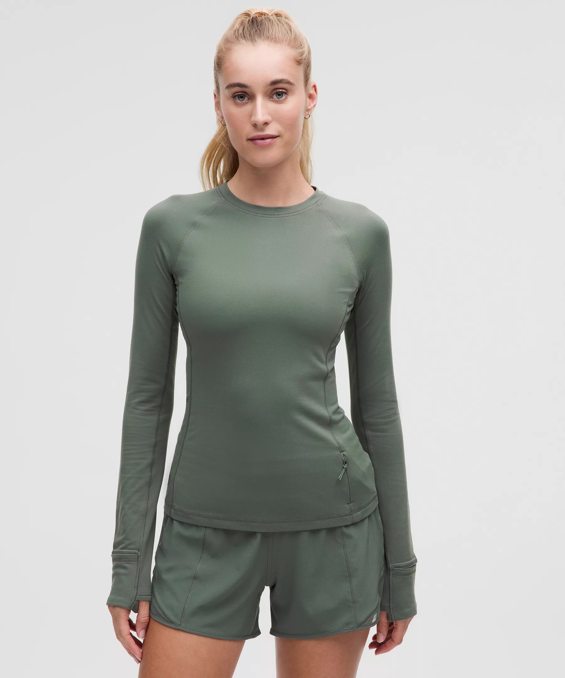 Soft and Warm, Rulu™ Fabric Soft and warm Sweat-wicking Four-way stretch Quick-drying Added Lycra® fibre for stretch and shape retention 100% of the nylon in this product is recycled (excluding trims) Slim Fit, Hip Length Skims your body Sits below the waistband for moderate, everyday coverage Product Features Thumbholes and Cuffins™ keep sleeves down and chills out Zippered pocket keeps your card and keys safe This garment was treated with No-Stink Zinc™ to inhibit the growth of odour-causing bacteria on the fabric Reflective details Material and care Materials Body: 92% Recycled Nylon8% Lycra Elastane Care Wash with like colours Machine wash cold Do not bleach Tumble dry low Do not iron Do not dry clean Imported