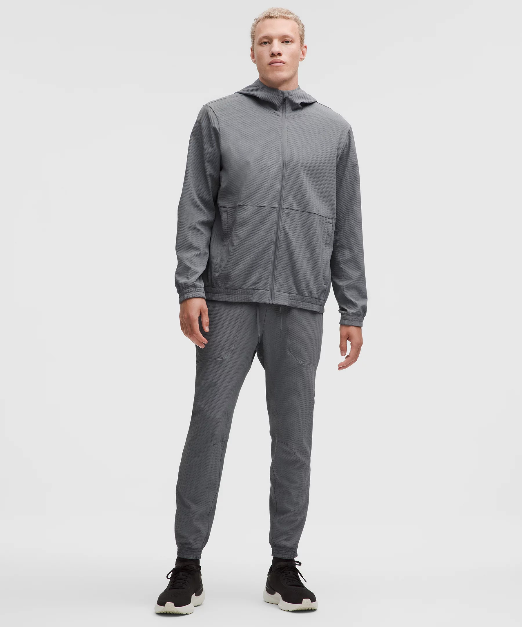 Designed for Training Lightweight, Abrasion-Resistant Fabric - Lightweight - Abrasion-resistant - Four-way stretch - Softly textured exterior - Brushed grid interior Classic-Tapered Fit - Streamlined fit gives glutes and thighs breathing room, then tapers to hem - Intended to sit at ankle for 28"-30" inseam Product Features - Zippered hand pockets with hidden phone and coin sleeves - Back pocket with a key loop - Waistband drawcord can be worn inside or out - Perforations at the back of the knee for airflow Material and care Materials Pockets: 100% Recycled Polyester - Body: 85% Recycled Nylon15% Elastane Care Machine Wash Cold - Do Not Bleach - Tumble Dry Low - Do Not Iron - Do Not Dry Clean - Wash With Like Colors