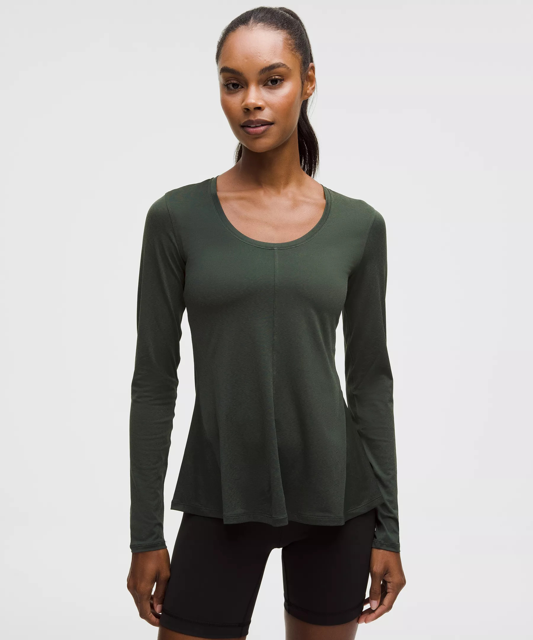 Lightweight Flowy Hem Long-Sleeve Shirt