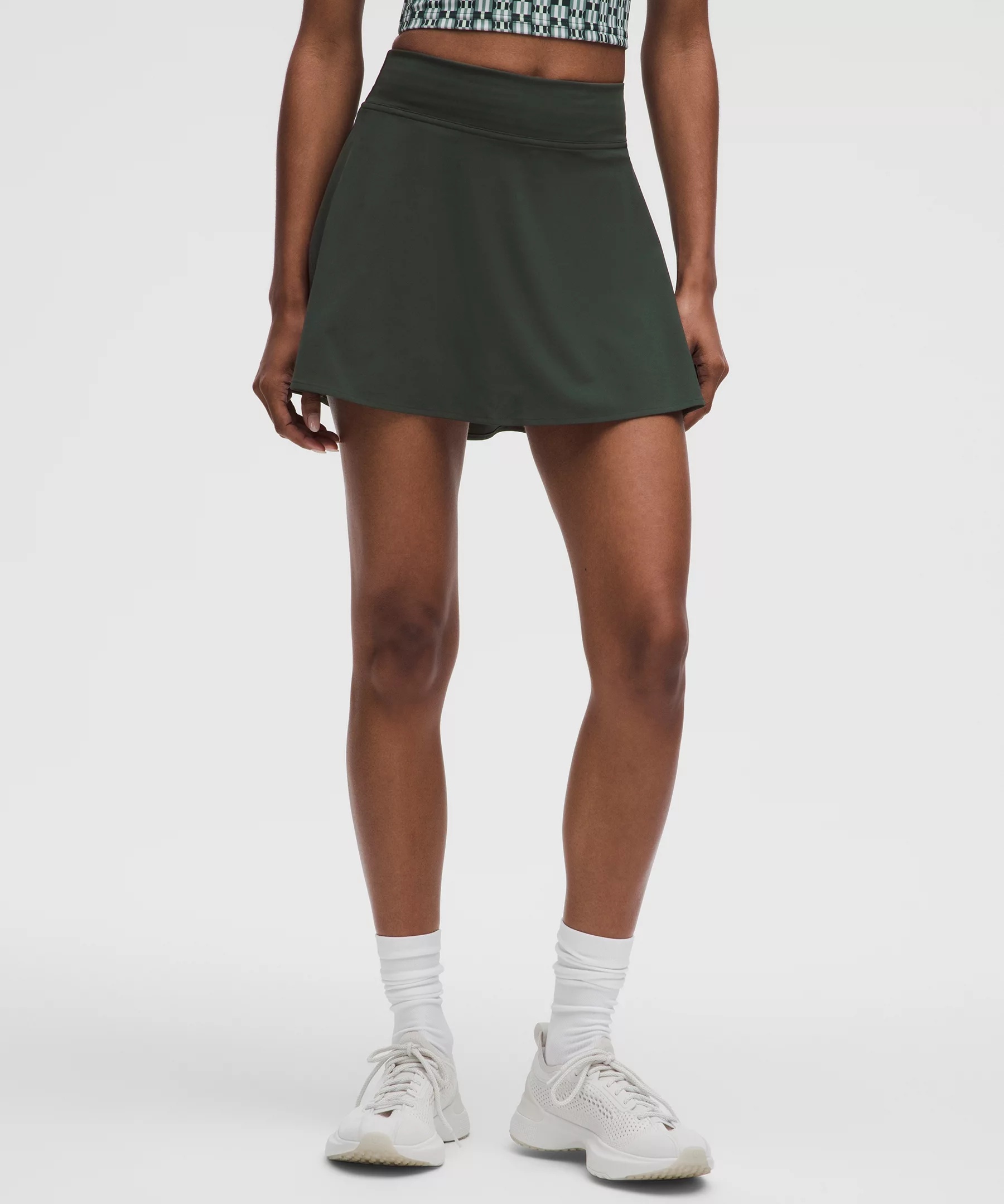 Designed for Tennis Lightweight, Swift Fabric - Lightweight - Four-way stretch - Sweat-wicking - Quick-drying - Built-in Luxtreme™ fabric liner is sweat-wicking and four-way stretch with a cool, smooth feel - Added Lycra® fibre for stretch and shape retention Fit Information - High rise - Skirt length is measured at the centre front, from the top of the waistband to the hem - Skirt length by size: 0–2: 13", 4–6: 13.5", 8–10: 14", 12–14: 14.5" - Liner length for all sizes: 3.5” Product Features - Continuous drawcord - Drop-in pockets on the liner - Silicone grippers on the hem prevent ride-up - Built-in liner offers extra coverage Material and care Materials Body: 86% Recycled Polyester14% Elastane - Back Lining: 69% Nylon31% Lycra Elastane - Waistband: 84% Recycled Polyester16% Elastane - Front Lining: 87% Nylon13% Lycra Elastane Care Machine Wash Cold - Do Not Bleach - Tumble Dry Low - Do Not Iron - Do Not Dry Clean - Wash With Like Colors