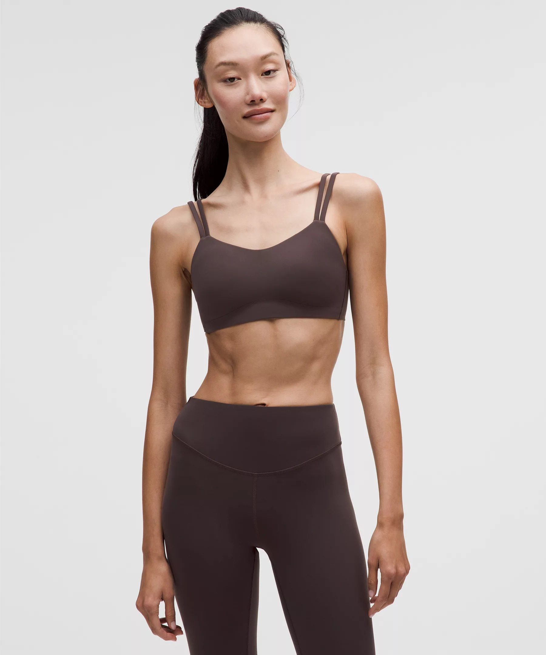 Designed for Yoga and Casual Soft, Sweat-Wicking Fabric - Sweat-wicking - Soft - Quick-drying - Four-way stretch Light Support, B/C Cups - Intended for low-impact activities Product Features - Moulded foam cups are lightweight and malleable Material and care Materials Bra: 75% Nylon25% Elastane Care Machine Wash Cold - Do Not Bleach - Line Dry - Do Not Iron - Do Not Dry Clean - Wash With Like Colors