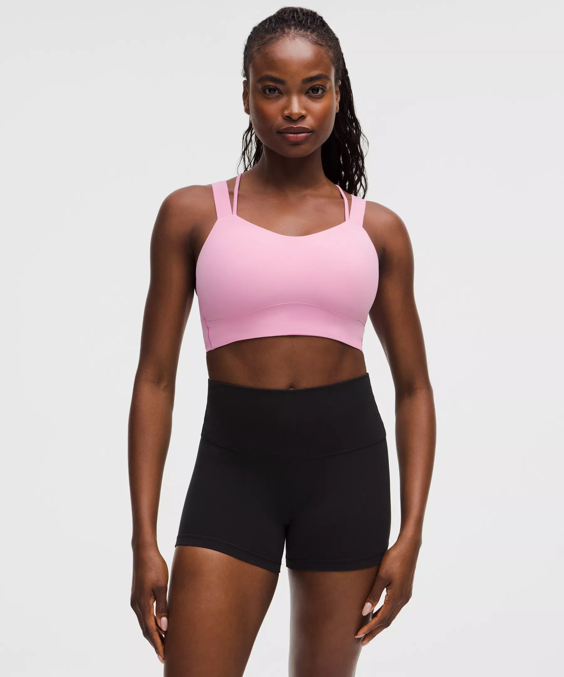 Designed for Yoga and Casual Soft, Sweat-Wicking Fabric - Sweat-wicking - Soft - Quick-drying - Four-way stretch Light Support, D/DD Cups - Intended for low-impact activities Product Features - Moulded foam cups are lightweight and malleable Material and care Materials Bra: 75% Nylon25% Elastane - Cup: Cup Shell: 100% PolyesterCup Foam: 100% PolyurethaneCup Liner: 100% Polyester Care Machine Wash Cold - Do Not Bleach - Line Dry - Do Not Iron - Do Not Dry Clean - Wash With Like Colors