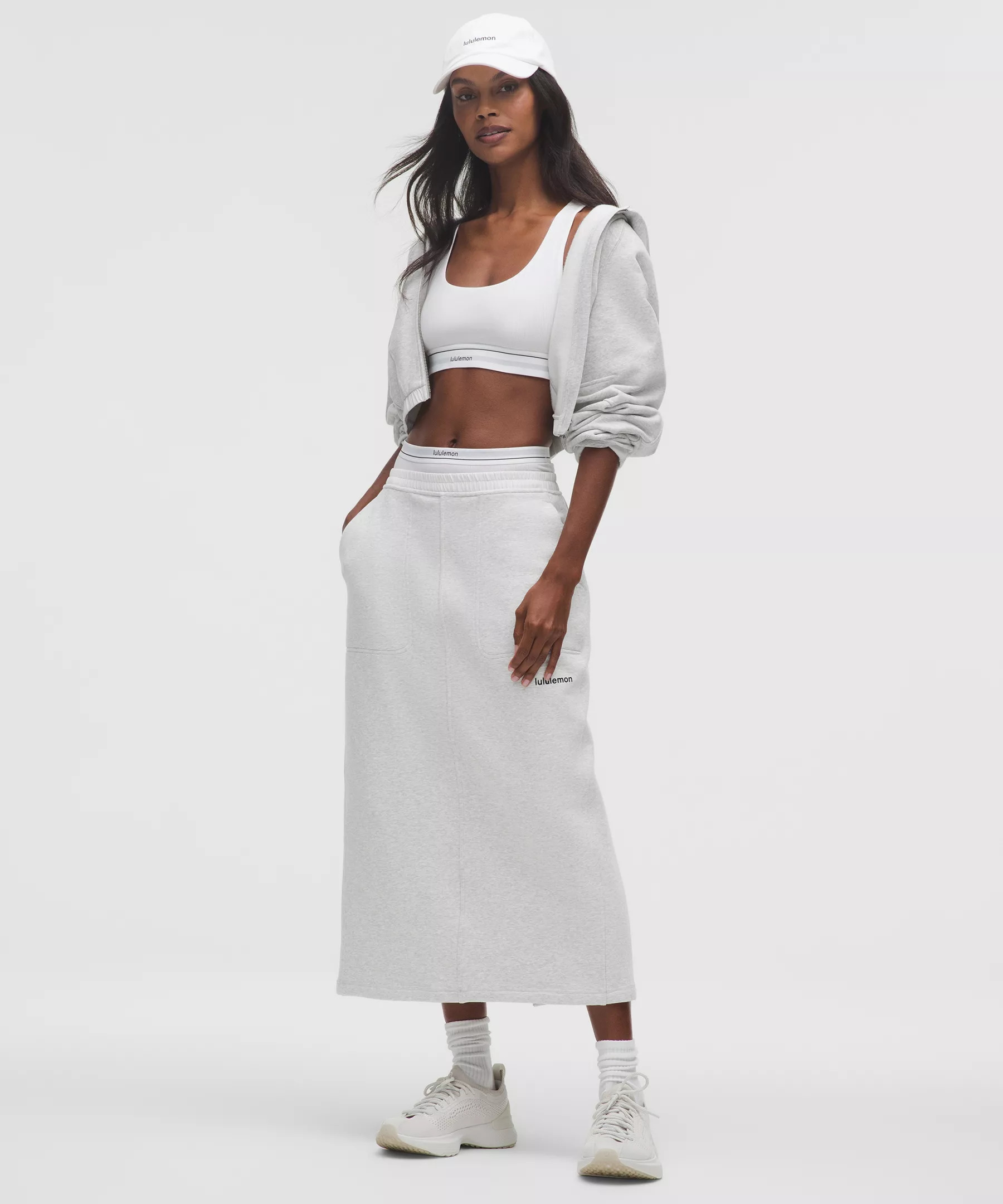 Designed for Casual Warm, Cotton-Blend Fleece Fabric - Warm - Soft - Naturally breathable - Four-way stretch High Rise, Midi Length - Relaxed fit is roomy through glutes and thighs Product Features - Cinch the interior drawcord to customize your fit - Hand pockets, one with a hidden card sleeve - Back slit for ease of movement Material and care Materials Body: 73% Cotton24% Recycled Polyester3% Elastane - Outer Waistband: 65% Recycled Nylon30% Nylon5% Elastane - Inner Waistband: 95% Cotton5% Elastane Care Machine Wash Cold - Do Not Bleach - Tumble Dry Low - Do Not Iron - Do Not Dry Clean - Wash With Like Colors