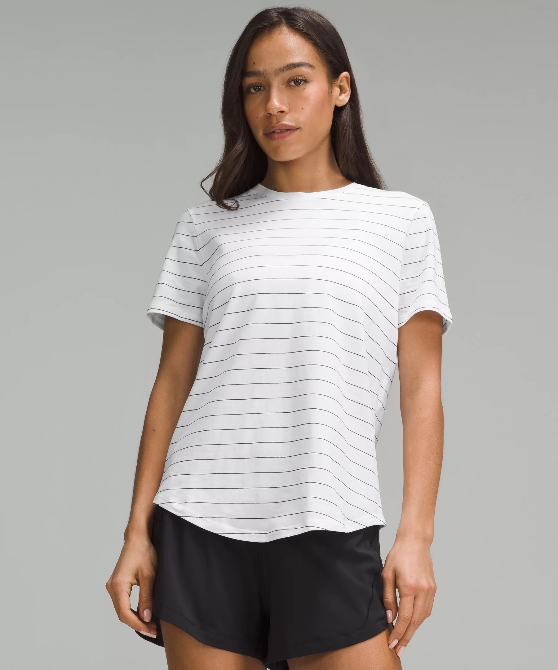 Super-Soft, Pima Cotton Fabric Soft Four-way stretch Naturally breathable Added Lycra® fibre for stretch and shape retention Classic Fit, Hip Length An easy fit that floats away from your body Curved hem hits below the waistband for moderate, everyday coverage Material and care Materials Body: 94% Pima cotton6% Lycra® elastane Care Wash with like colours Machine wash cold Do not bleach Tumble dry low Do not iron Do not dry clean Imported