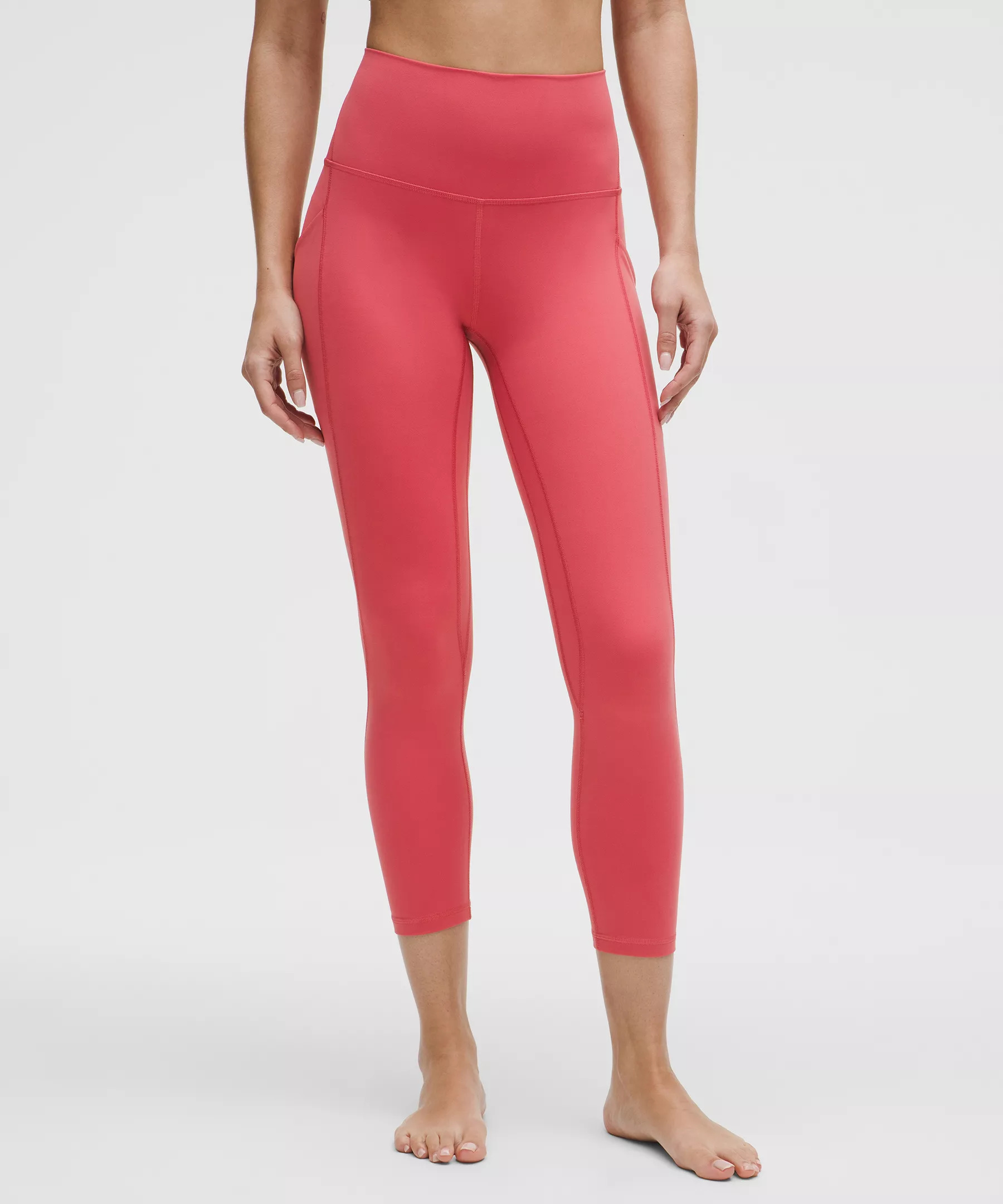 Designed for Yoga Feels Buttery-Soft and Weightless, Nulu™ Fabric - So buttery soft, it feels weightless - Four-way stretch - Sweat-wicking - Breathable - Added Lycra® fibre for stretch and shape retention High Rise, 23" Length - Intended to sit below calf Product Features - Side drop-in pockets - Back drop-in pocket can hold a key, card, or phone - This collection’s great for low-impact workouts like yoga or whenever you want to feel really, really comfortable Material and care Materials Body: 81% Nylon19% Lycra Elastane Care Machine Wash Cold - Do Not Bleach - Tumble Dry Low - Do Not Iron - Do Not Dry Clean - Wash With Like Colors