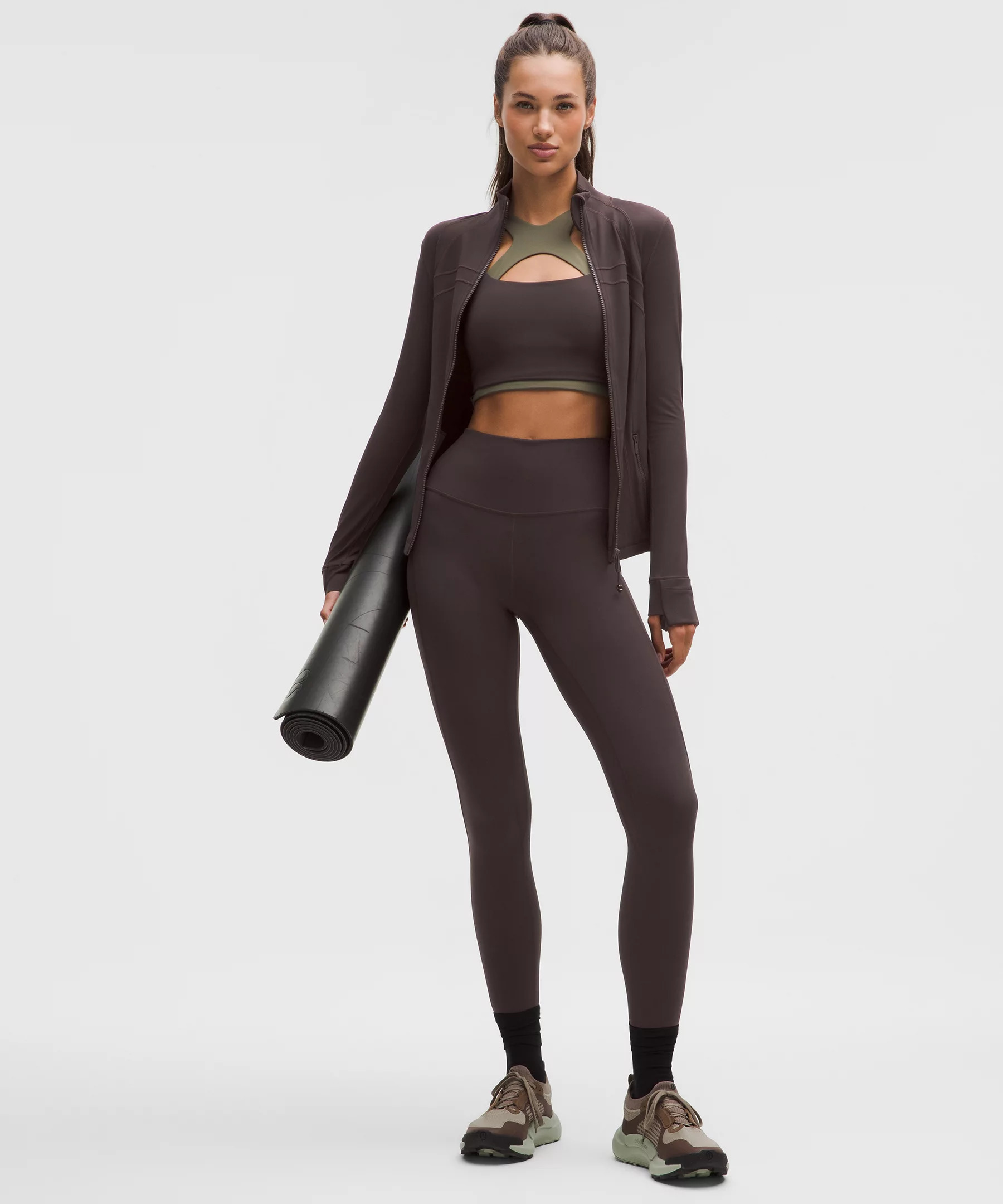 Designed for Yoga Feels Buttery-Soft and Weightless, Nulu™ Fabric - So buttery soft, it feels weightless - Four-way stretch - Sweat-wicking - Breathable - Added Lycra® fibre for stretch and shape retention High Rise, 25" Length - Intended to sit above ankle Product Features - Side drop-in pockets - Back drop-in pocket can hold a key, card, or phone - This collection’s great for low-impact workouts like yoga or whenever you want to feel really, really comfortable Material and care Materials Body: 81% Nylon19% Lycra Elastane Care Machine Wash Cold - Do Not Bleach - Tumble Dry Low - Do Not Iron - Do Not Dry Clean - Wash With Like Colors