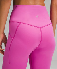 Feels Buttery-Soft and Weightless, Nulu™ Fabric So buttery soft, it feels weightless Four-way stretch Sweat-wicking Breathable Added Lycra® fibre for stretch and shape retention High Rise, 25" Length Intended to sit above ankle Product Features Side drop-in pockets Back drop-in pocket can hold a key, card, or phone This collection’s great for low-impact workouts like yoga or whenever you want to feel really, really comfortable Material and care Materials Body: 81% Nylon19% Lycra® elastane Care Wash with like colours Machine wash cold Do not bleach Tumble dry low Do not iron Do not dry clean Imported